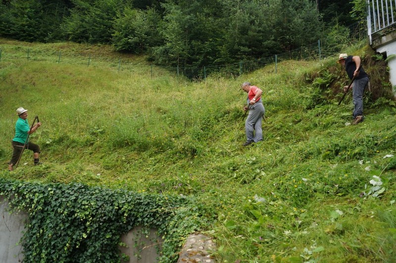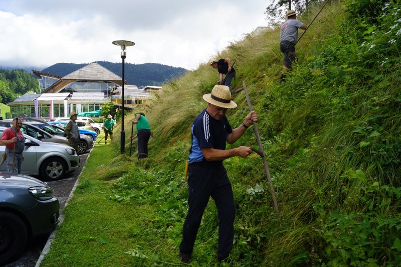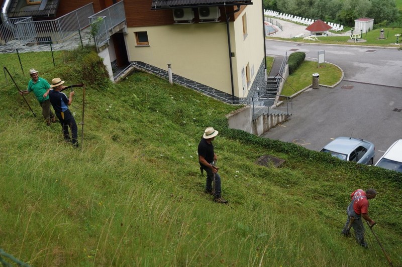 Kositi so začeli ob pol sedmih zjutraj Rajko Žebaljec, Jože Drolc, Jernej Mali, Ivan Hribar, Srečo Urankar, Brane Hribar in France Šuštar. Poleg Term Snovik pa je za malico poskrbela Manja Žebaljec.