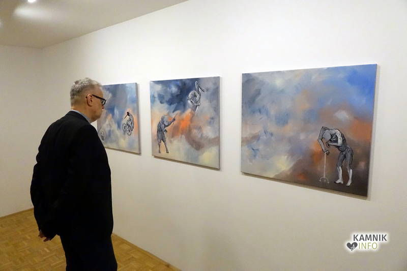 Mladi kamniški slikar Matevž Sterle (1985), s študentsko Prešernovo nagrado nagrajeni ter vse bolj uveljavljen restavrator, ki so mu zaupana dela na številnih pomenljivih in pomembnih umetnostno-zgodovinskih lokacijah v državi, je tudi nadvse talentiran in obetaven kamniški slikar, ki je s sinočnjo razstavo na nek način znova dokazal, da kri ni voda, saj odločno in na vedno bolj samosvoj način nadaljuje subtilno, družbeno kritično družinsko slikarsko tradicijo.