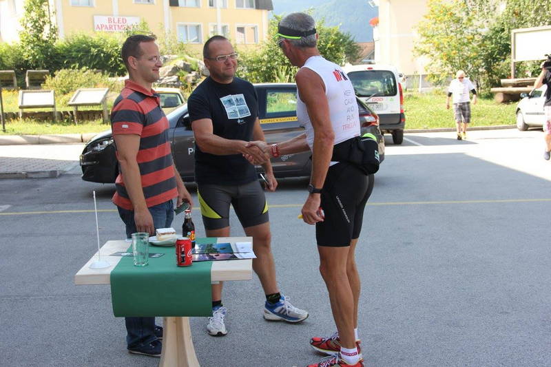 Pri spomeniku pravkar preminulemu Slavku Avseniku je v spremstvu župana Radovljice Cirila Globočnika položil venec v njegovo čast. Na Bledu je končal svoj prvi maraton, dobrih 42 km in tam ga je pričakal direktor občinske uprave Matjaž Berčon z znamenito blejsko kremšnito. Po kilometrih je bila za njim dobra polovica poti, po času, predvidenem za podvig pa zgolj dobra tretjina. Takoj po Bledu je moral zagristi v klance Gorij in Pokljuke, katerih je bilo preko 20 km. Opoldansko sonce se je upiralo v cesto preko Zatrnika do Mrzlega studenca pa vse do Rudnega polja. Tam so maratonskega tekača pričakali biatlonci s Tejo Gregorin in Klemnom Bauerjem na čelu ter na pospremili slab kilometer do ”menjalnega prostora” pod planino Konjščico. Tam se je po pretečenih 67 km cestni del končal in Miro je cestne superge zamenjal za gorske, prav tako tudi malo večji opasnik za nošenje tekočine, energetskih gelov in ploščic.