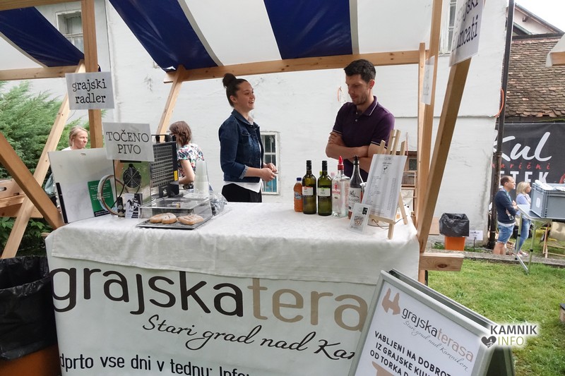 Poleg je bila postavljena stojnica Grajske terase, še malce naprej pa so se obiskovalci lahko posladkali pri gospe iz Tarangele. Svojo ponudbo so ponovno predstavili tudi La Pinata in Vratarnica, od piva pa sta bila na voljo Barut in Menin’c.
