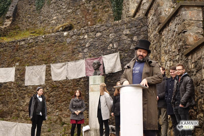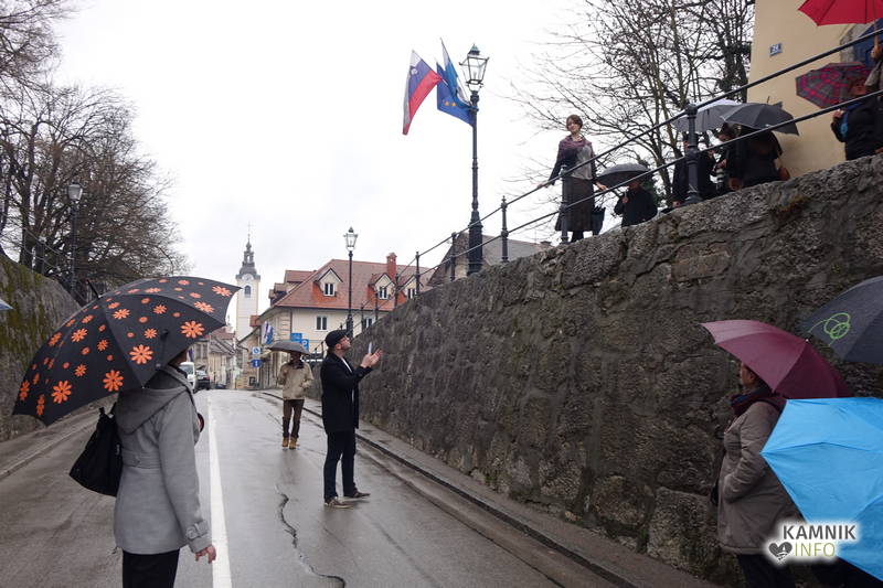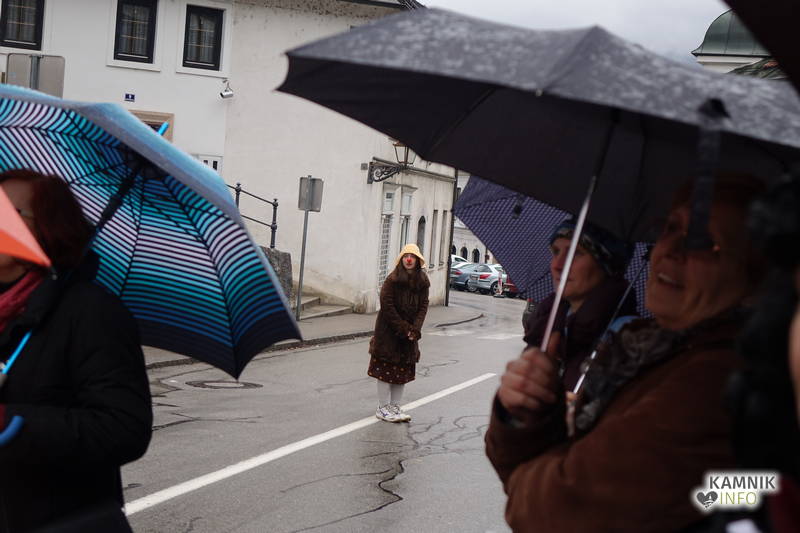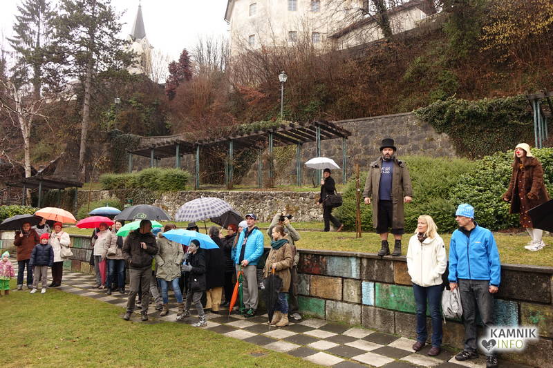 Točno opoldne, v domala krivoversko neprimernem času, ki je na naših tleh že od pamtiveka rezerviran za dvigovanje soparic iznad krožnikov vroče goveje juhe ter srebanje razkuhano vročih domačih nudeljcev, se je danes, na kulturnega praznika dan, v rahlem pršenju, kakršno zna odpovedati tudi neošotorjeno gasilsko veselico, v središču Kamnika odvila nenavadna predstava, ki bi, ako bi se jo morebiti udeležila (še) večja množica pravovernih kamniških častilcev in oboževalcev kulture ter umetnosti, utegnila sprožiti celo polemike, če ne morebiti kar zgražanja in protestov.