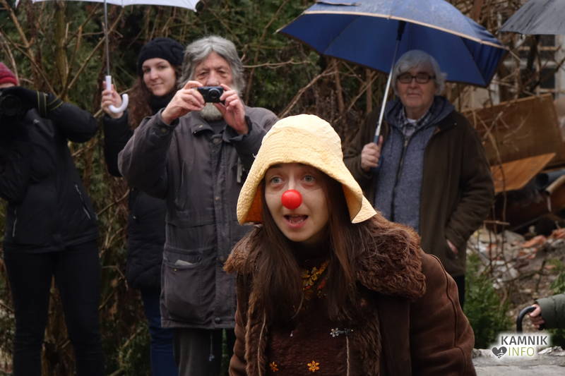 Za še večjo mero upravičene sumničavosti med prisotnimi je poskrbela tudi klovnesa, ki se, v nasprotju pričakovanji, še posebej pa z vedenjem, ki pritiče vsakemu z rdečim nosom, ni poslužila zabavljaških trikov, denimo žongliranja, ampak je v tujem jeziku kvasila nekaj v smislu »We Are The Nation On the Best Location«. K sreči smo Kamničani, še iz časov, ko je bil samski dom polno zaseden, ponosni na to, da tujih jezikov ne razumemo najbolje, razen v primeru, da jih govori oblast, kajti takrat zna dobršen del Kamničanov čudežno postati prav poliglotski, kar na nemo izpričuje tudi tisti čudni spomenik, ki, po mnenju tovrstnih »poliglotov« oz. njihovih potomcev, kazi podobo parka, zavoljo česar bi ga kazalo čim prej zamenjati z mamutom.