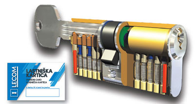 - Kakovostni cilindrični vložki so zaščiteni z lastniško kartico, kar pomeni, da je ključe nemogoče kopirati/ponarejati brez vašega dovoljenja oziroma soglasja.