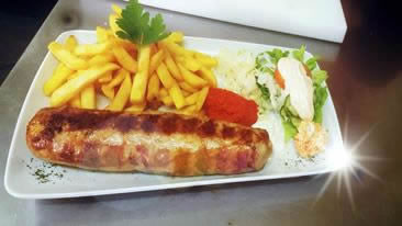 Ko smo že ravno pri pleskavicah, nikakor ne smemo pozabiti hišne specialitete, izjemno okusne 300 gramske »Gurmanske pleskavice«, ki je izdatno »našpikana« s sirom in slanino. Le-ta se je namreč znašla tudi na našem jedilniku in brez zadrege ter pretiravanja lahko rečemo, da je bila izvrstna.