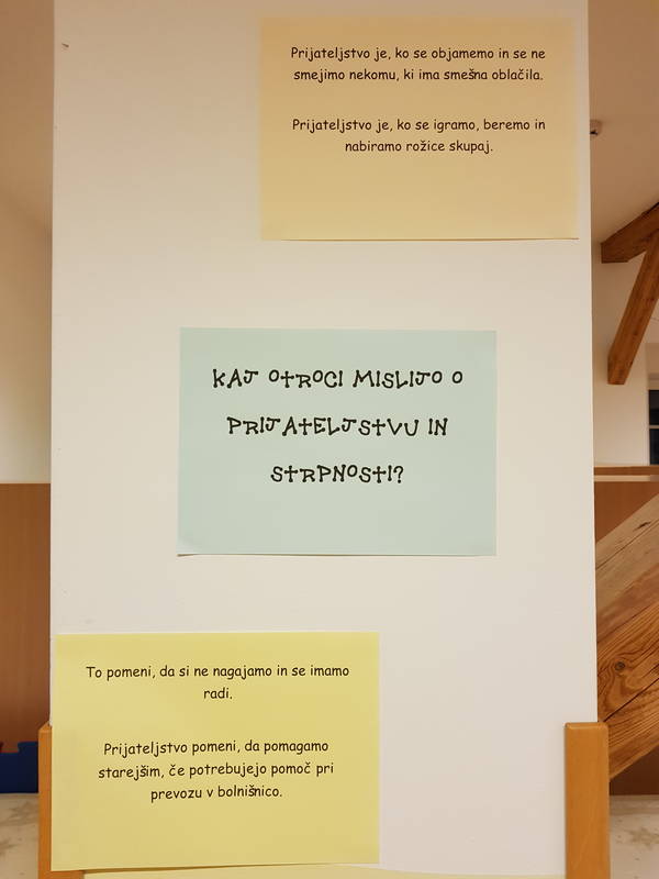 Strpnost in prijateljstvo je tisto, kar vedno pogosteje manjka v naših življenjih. Zato smo se v zasebnem vrtcu Sonček, enota Trobentica, vzgojiteljice skupin račke in Krtki odločile, da letos še posebej skrbno negujemo prijateljstvo.