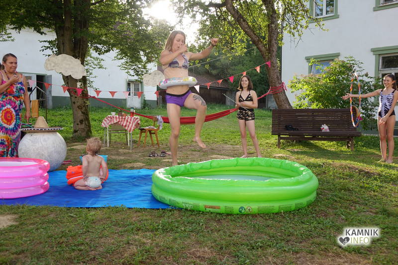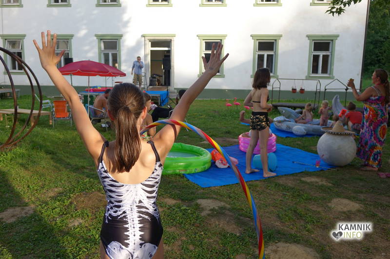 Da je le luštno in zabavno, kot je bilo včeraj zvečer v globoki senci mačjegrajskega atrija, kjer se je odvila nova v vrsti sproščenih in veselih kulturno-zabavnih prireditev, ki bi ji tokrat, glede na to, da smo bili priča tudi atraktivnim skokom v vodo, akrobacijam in neuradnemu občinskemu prvenstvu v vrtenju hula-hoop obroča za veterane in veteranke, lahko pripisali celo športni značaj.
