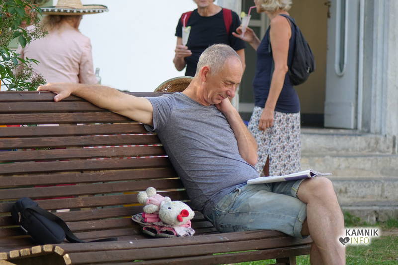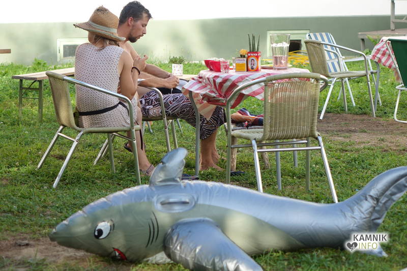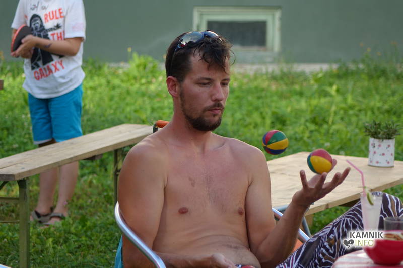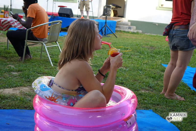 Razen v različnih dejavnostih, je bilo moč na mačjegrajski zabavni plaži včeraj moč uživati tudi v sladkem brezdelju ob koktajlih, branju in odličnih glasbenih nastopih, ki so se, spričo pregovorne kamniške sramežljivosti, potem, ko so se na nebu prižgale zvezde, razvili v veselo skupinsko ringa-rajanje, namesto večerne pravljice za lahko noč, pa je sledil še ogled Poletja v školjki.