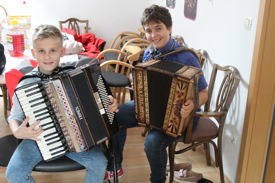 Na sprehod z Mačkom Murijem so nas pospremile male predšolske plesalke, ki pod vodstvom Urške Kirn plešejo v plesni šoli Miki, Tjaž Kregar in Kristjan Žavbi pa sta poskrbela, da prireditev ni minila brez zvokov harmonike.