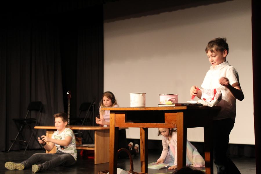 Za otroke so v zakulisju skrbele Katja Urankar, Erika Levec in Julija Remih, za to, da so se na odru pravočasno pripravljali in odmikali scenski elementi ter da je bil tehnični del pokrit pa Samo Bajde, Miha Pungartnik, Matic Hribar in Martin Loboda.
