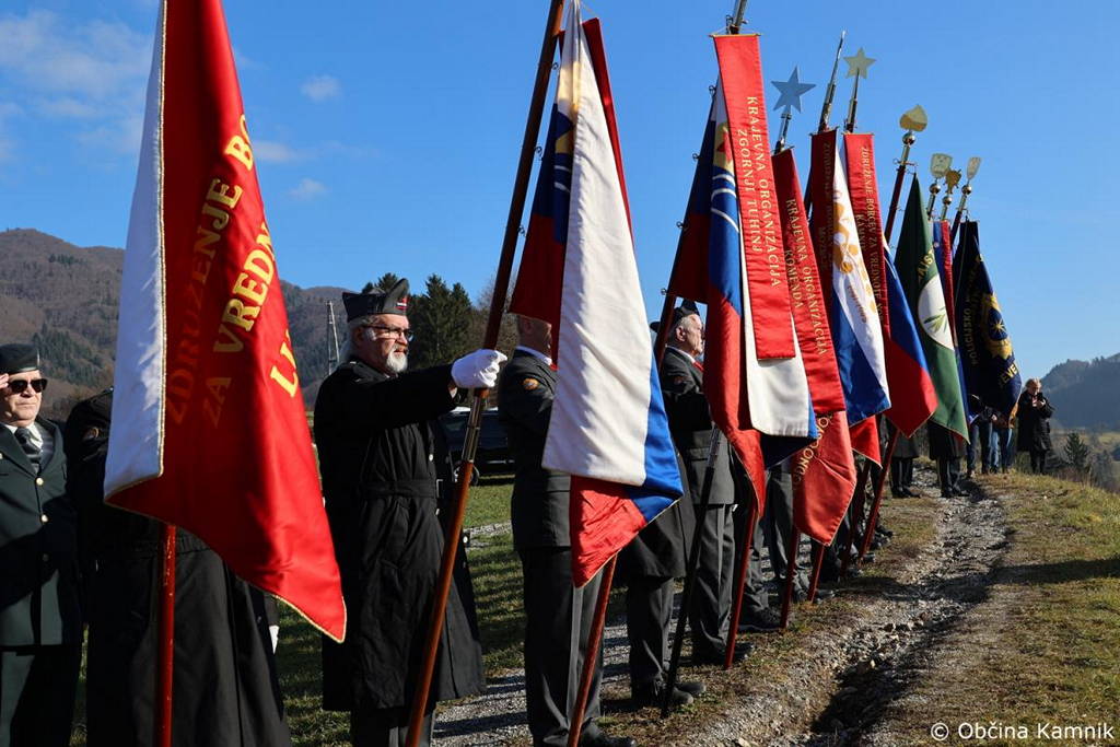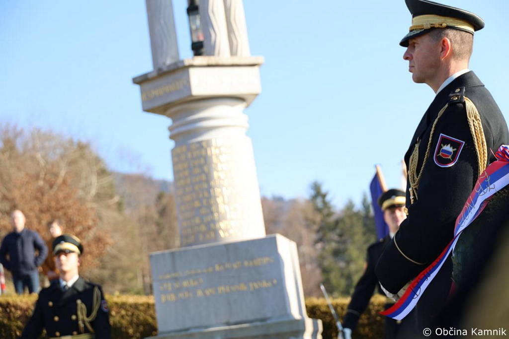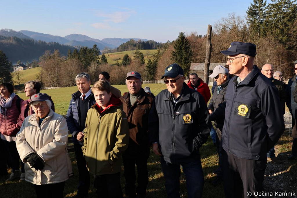 Ob tej priložnosti je prisotne v imenu organizatorja sprva nagovoril predsednik Združenja borcev za vrednote NOB Kamnik Igor Kanižar, ki je dejal: »Za svobodo, pravičnejši svet, solidarnost, odpravo izkoriščanja, spoštovanje dela, za človeka vredno življenje je dalo v NOB življenje 28.000 borcev med njimi tudi 192 borcev, katerih imena so zapisana na obeležju pred nami. Skupaj s partizansko vojsko so za naš boljši jutri bili boj tudi zavezniški vojaki, zato se vsako leto znova spomnimo tudi nanje. Njihov boj je prežemala človečnost in solidarnost. Njihova mlada življenja so usahnila prekmalu, vendar še naprej živijo v naših spominih, so z nami, dajejo nam pogum, da se spopadamo z novimi izzivi, ki jih pred nas postavlja življenje. Vrednote, za katere so žrtvovali svoja življenja niso in ne bodo nikoli pozabljene, saj boj proti zlu in krivicam v resnici nikoli ni končan. Nikoli več nacifašizma, nikoli več vojne in sovraštva! O tem so bili po drugi svetovni vojni ljudje prepričani in tudi dolgo so v tem prepričanju živeli, misleč, da so se vsi narodi iz tega zla nekaj naučili. Žal se niso! Tudi danes v teh prazničnih dneh, ko mnogi v miru nazdravljamo življenju, sreči, žal divjajo vojne, umirajo nepotrebne civilne žrtve, nedolžni otroci, umira človečnost. Slovenci smo v več stoletnem boju izoblikovali svojo narodno samobitnost in uveljavili svojo državnost z antifašističnim, narodnoosvobodilnim in osamosvojitvenim bojem. To je uspeh vsakogar izmed nas, naš skupni uspeh. Naša dolžnost do padlih za domovino in do njihovih svojcev je ohranjati spomin in zavest, da samostojnost in neodvisnost slovenskega naroda nista samoumevni. Slovenci smo v preteklosti izkusili marsikaj hudega, vedno pa smo se znali postaviti po robu sovražnim silam in jih s skupnimi močmi premagati. Mladim, rojenim po letu osamosvojitve, bomo spoštovanje do dogodkov in ljudi, ki so imeli ključne vloge v prvi in drugi svetovni in vojni za samostojnost in neodvisnost, privzgojili samo z lastnim zgledom, zato se vedno znova vračamo k pomnikom naše zgodovine, da nas vidijo in slišijo, da ne potonejo v pozabo. Spoštovani zbrani želim vam srečno, zdravo in uspešno novo leto 2024.«
