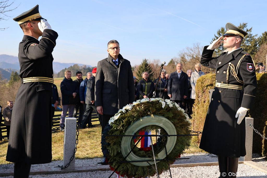 Minister za obrambo Republike Slovenije Marjan Šarec pa je položil venec v spomin na 192 padlih partizanov, narodnemu heroju Martinu Kotarju, kapitanu ameriške misije Charlesu Fischerju in ameriškima častnikoma in v nagovoru med drugim poudaril: »Na tem mestu so se bili težki boji skupaj z ameriškimi zavezniki. Imena, ki so zapisana tukaj, bodo večno vklesana v ta spomenik in prav je tako. Kajti mnogi so dali svoja življenja, da lahko danes živimo v samostojni Sloveniji« ter povedal: »V veliko veselje in čast mi je, da sem ponovno na tem mestu, kamor sem dolga leta zahajal kot župan Občine Kamnik. Vedno smo se spoštljivo poklonili spominu 192 padlim na tem mestu, ki niso dočakali svobode, ki niso dočakali privilegija, da bi živeli v svoji državi, da bi lahko govorili svoj jezik, častili lastno kulturo in gojili lastne običaje. Ta čas, praznični čas, je čas, ko se naše misli nekoliko ustavijo in pogledamo nazaj, kaj smo v preteklem letu storili ter se pripravljamo za naslednje leto. V tem času tudi praznujemo, ne le božič, ki je za mnoge najlepši praznik, ampak smo včeraj praznovali tudi dan samostojnosti in enotnosti, danes pa na tem mestu praznujemo dogodke druge svetovne vojne.