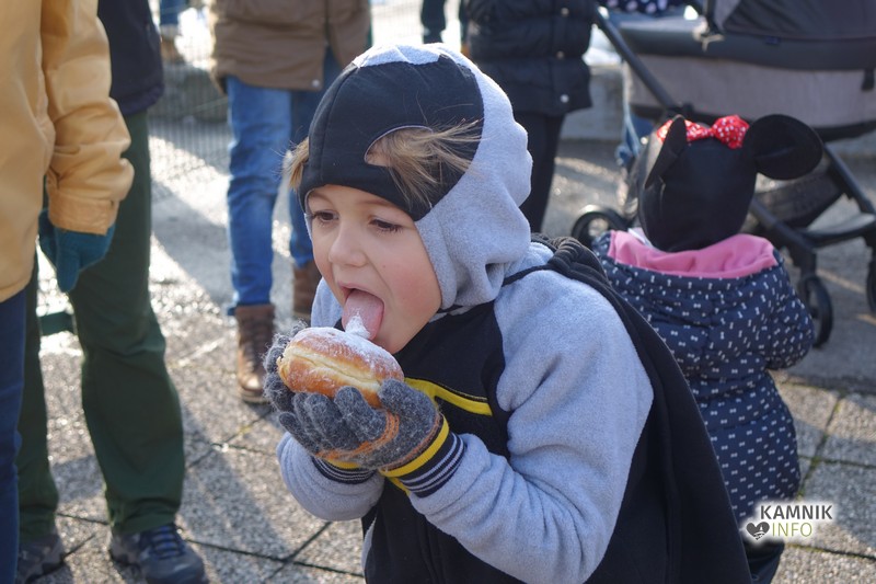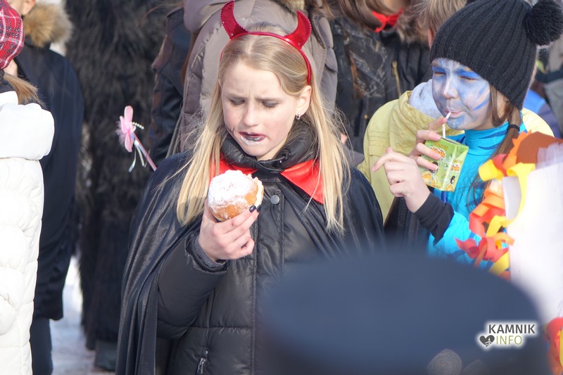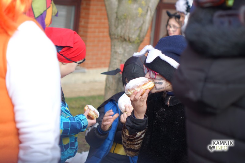 Pustni sprevod je po sprehodu po okoliških ulicah nato znova vrnil na izhodišče pred dupliško osnovno šolo, kjer so se maškare, ob glasbi in veselem druženju, kot to veleva stara navada, pomastile še s slastnimi pustnimi krofi.