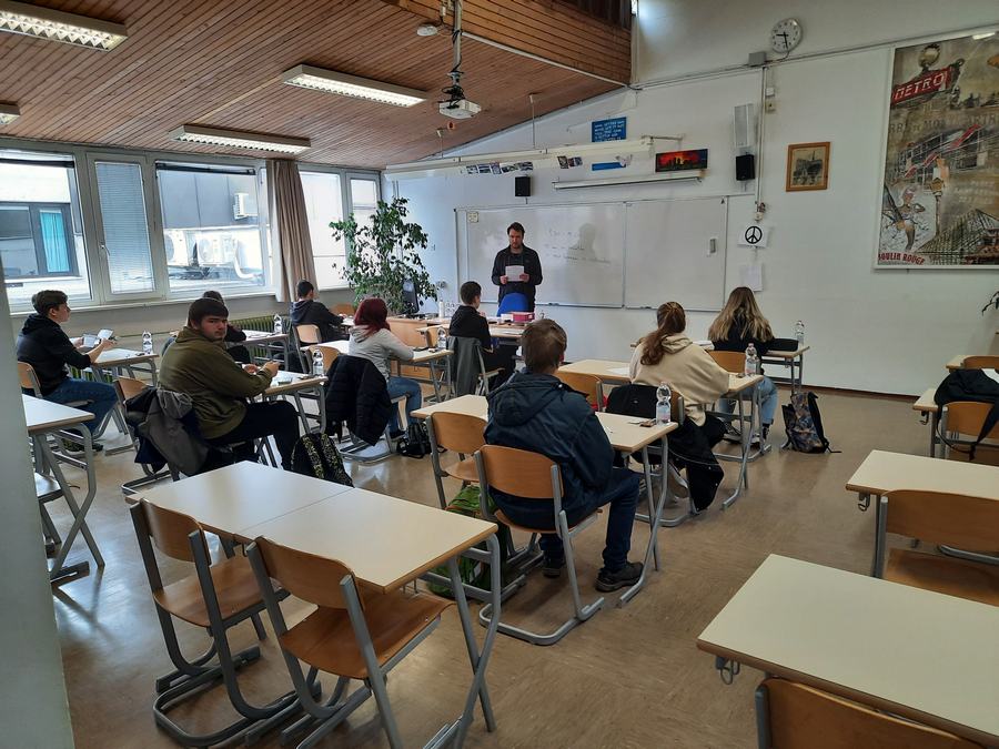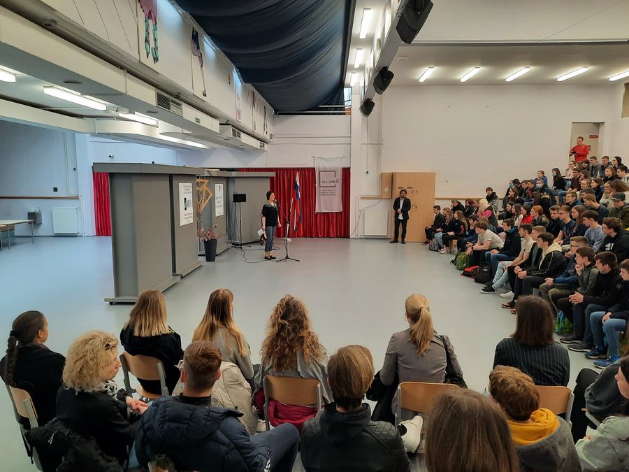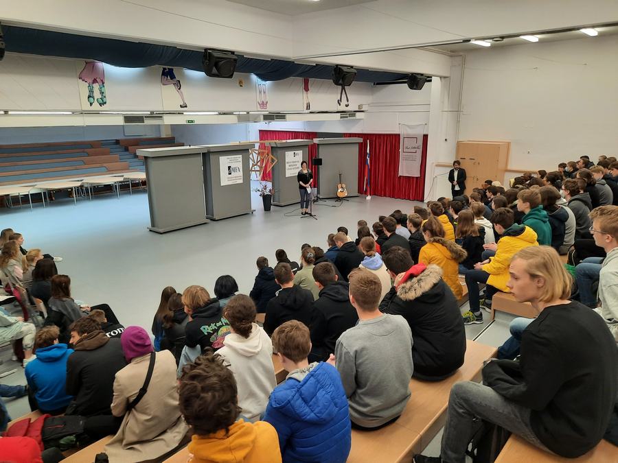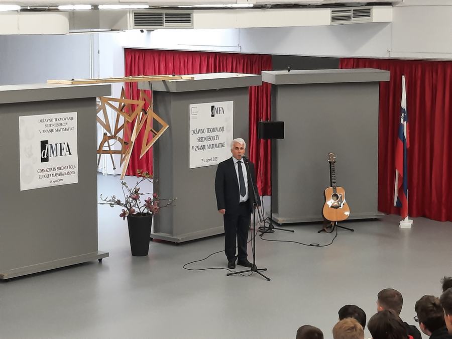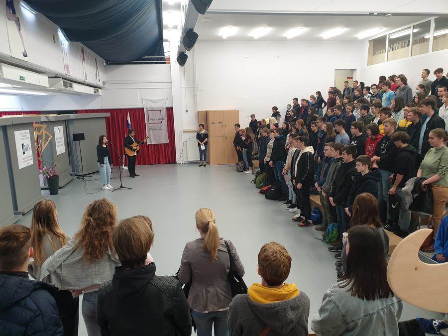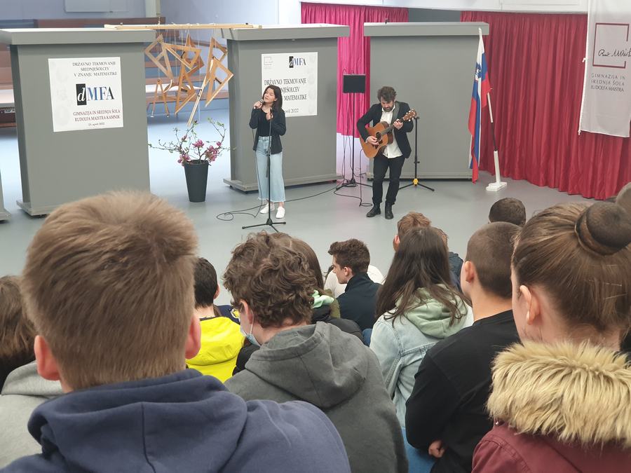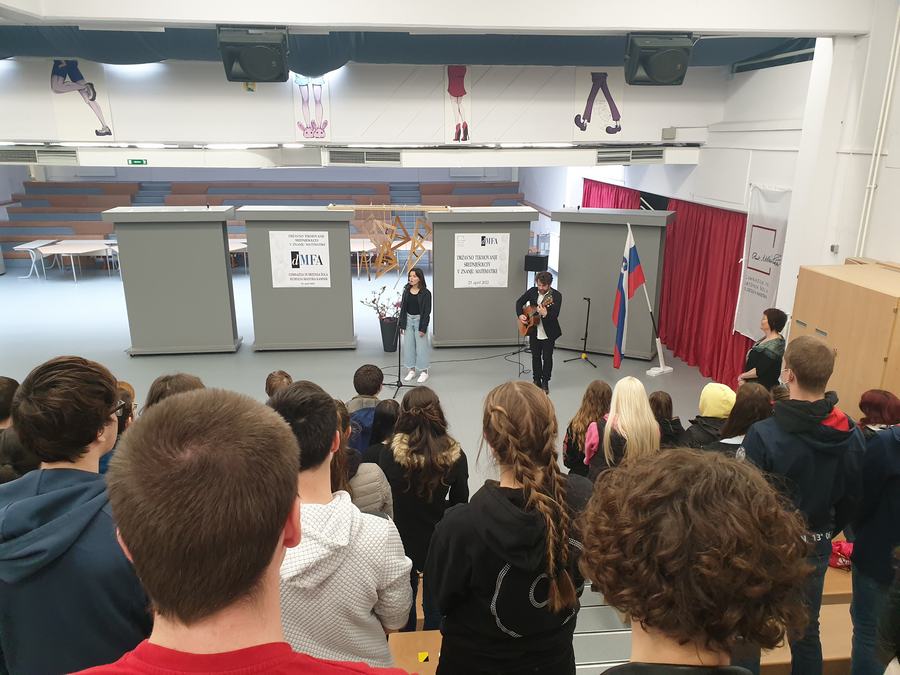 Za pozdravne besede in topel sprejem sta poskrbela ravnatelj dr. Branislav Rauter ter prof. Marta Zabret, za glasbeno dobrodošlico in sprostitev pred v predtekmovalni mrzlici pa četrtošolka Lara Glavan Pivec in prof. Matic Smolnikar.