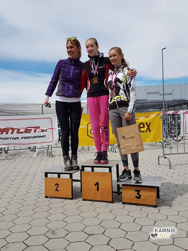 Ker pa v duatlonu tekmujejo tudi najmlajši, smo na zmagovalnem odru videli tudi njih. Sicer se še ne merijo za naslove državnih, a zlata medalja se je zasvetila na prsih Jake Mlakarja (TK Utrip), srebrna na Lari Simičak in bronasta na Manci Černelič (obe TK Trisport).