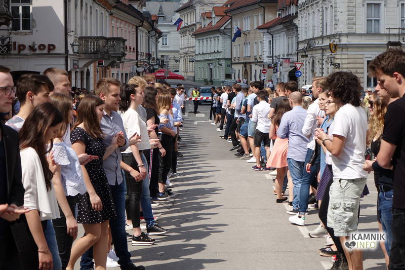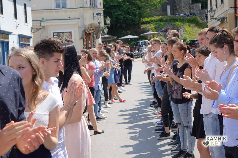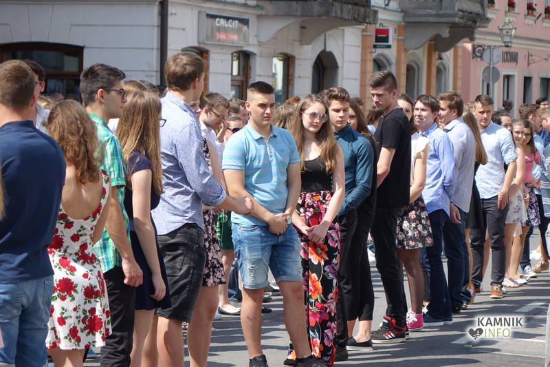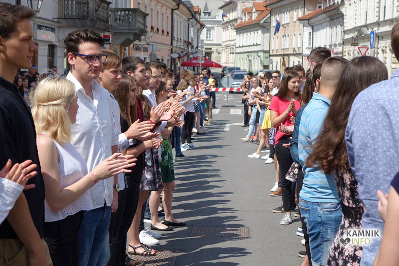 Maturantke in maturanti so se, skupaj z nekaterimi profesorji iz šole, ki je bila zadnja štiri leta njihov drugi dom, prek Šutne podali na Glavni trg, kjer sta jih nagovorila in pozdravila ravnateljica GSŠRM Bernarda Trstenjak in župan Marjan Šarec ter jim zaželela čim boljši uspeh na maturi ter vso srečo na njihovi nadaljnji življenjski poti.