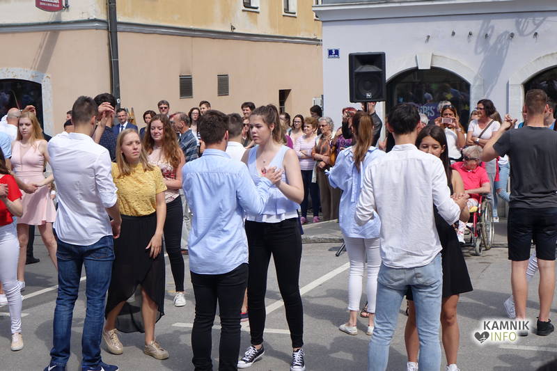 Maturantke in maturanti generacije 2018, ki jih čaka zgolj še naporna matura, so danes popoldne na Glavnem trgu odplesali tradicionalno četvorko, s katero generacije kamniških maturantov, ki obiskujejo Gimnazijo in srednjo šolo Rudolfa Maistra, že vrsto let razveseljujejo Kamničane.