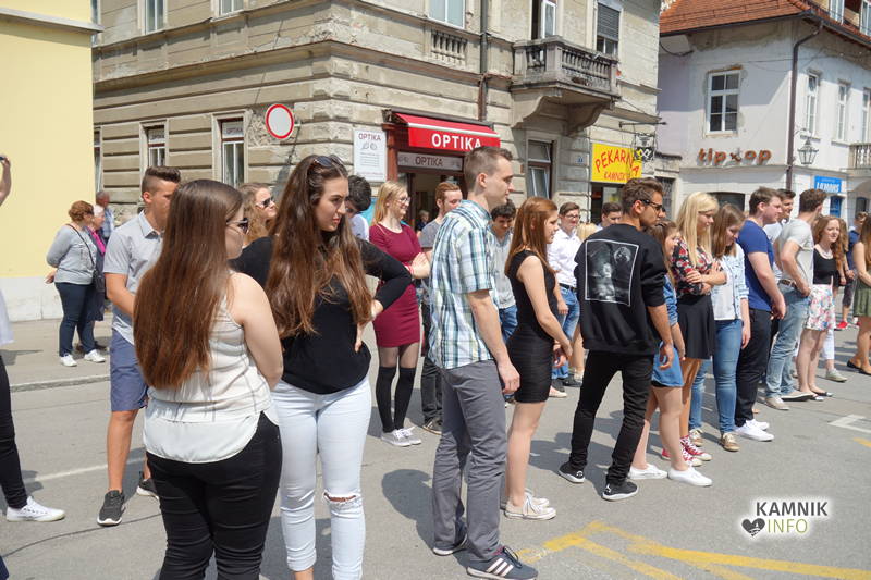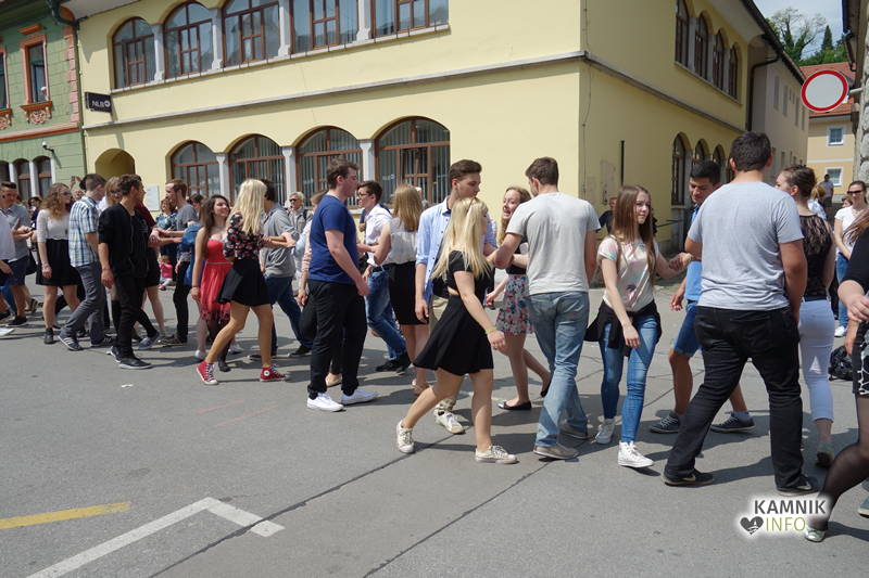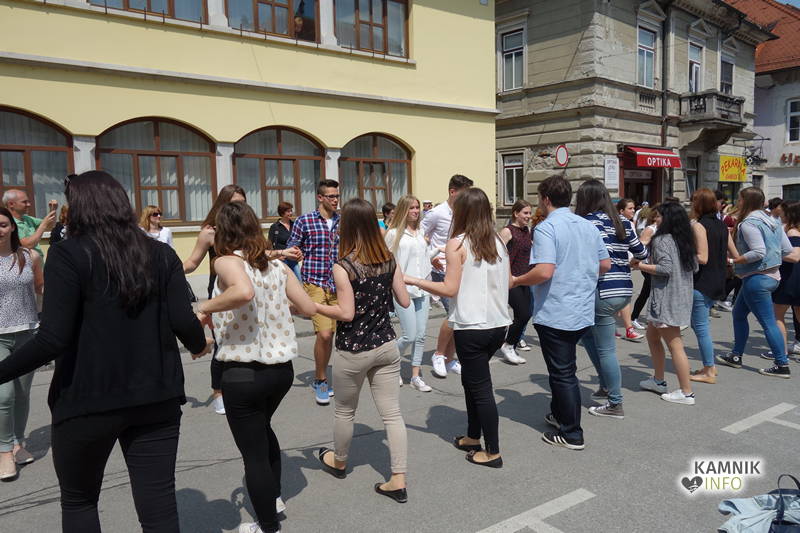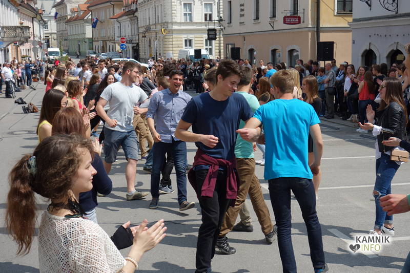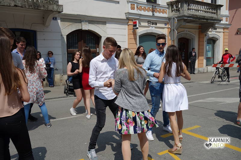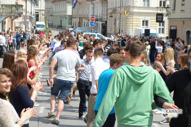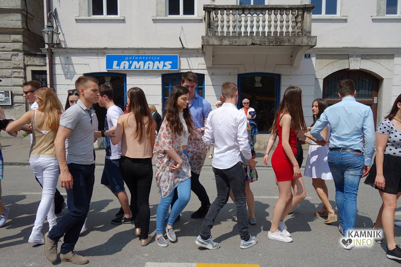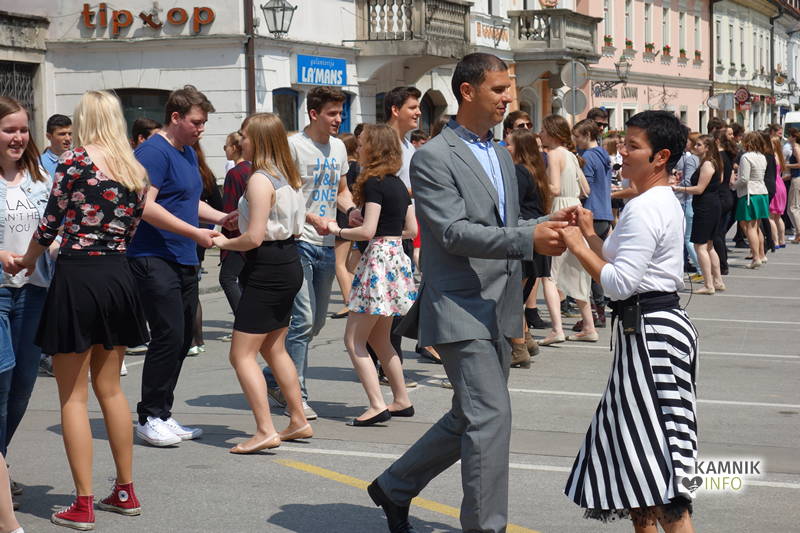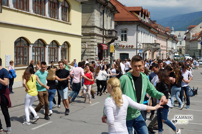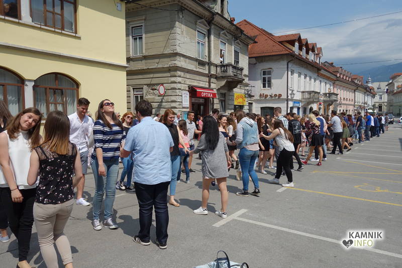 Dijaki in dijakinje zadnjega letnika, ki so svoje redne šolske obveznosti povečini že opravili, so si danes dopoldne nekoliko oddahnili od priprav na maturo ter v središču mesta odplesali tradicionalno četvorko.