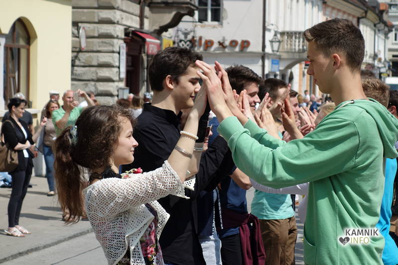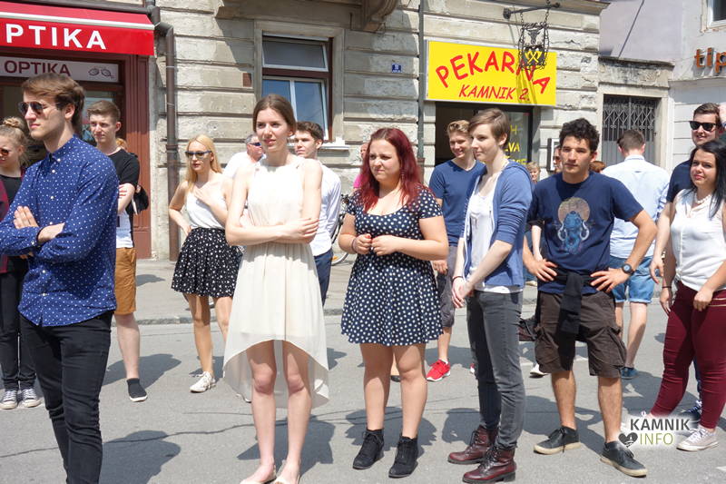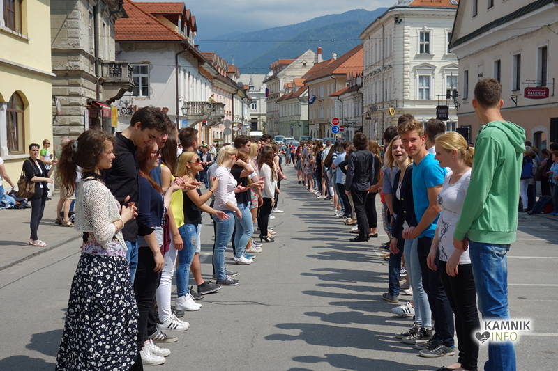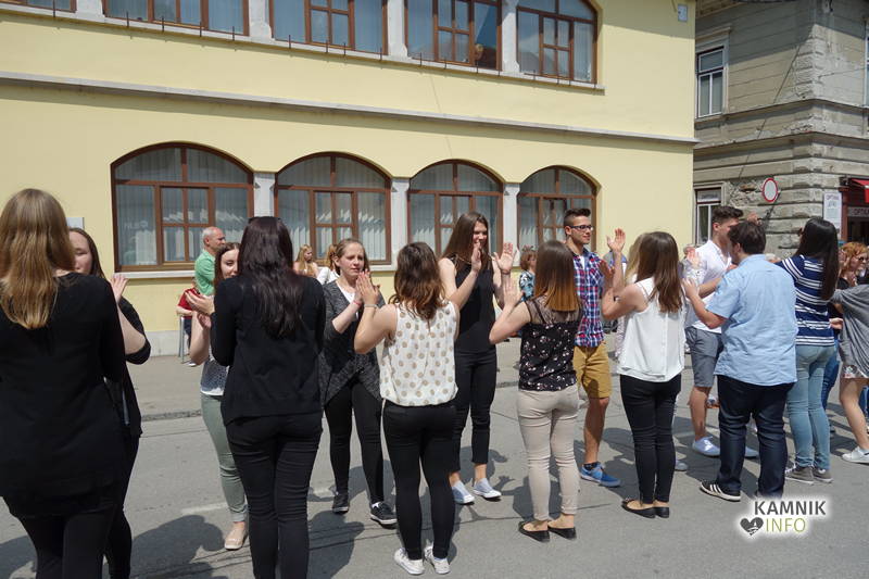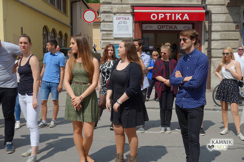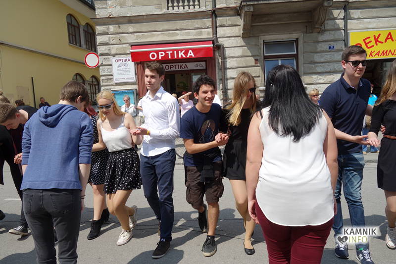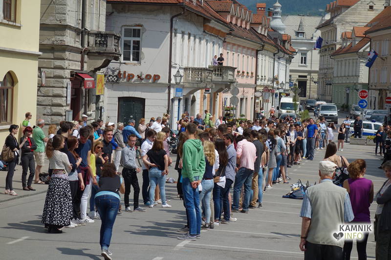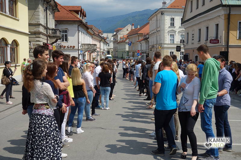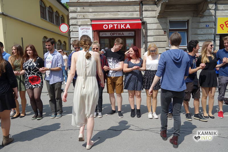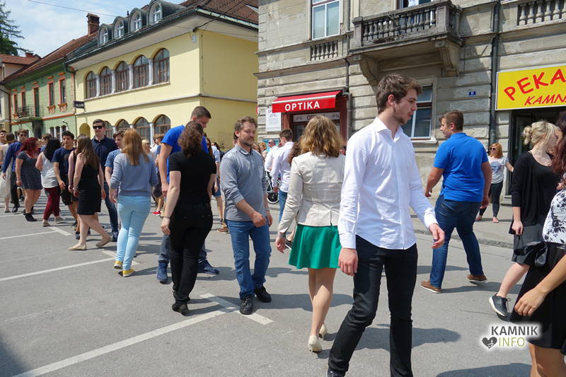 Dijaki in dijakinje zadnjega letnika, ki so svoje redne šolske obveznosti povečini že opravili, so si danes dopoldne nekoliko oddahnili od priprav na maturo ter v središču mesta odplesali tradicionalno četvorko.