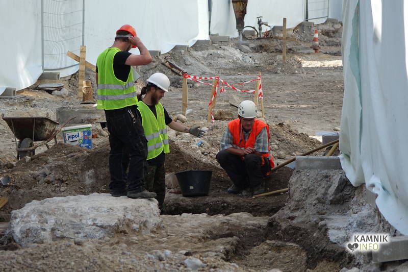 Arheologi, ki budno spremljajo prenovitvena dela v središču Kamnika, so že naleteli na prve arheološke najdbe.