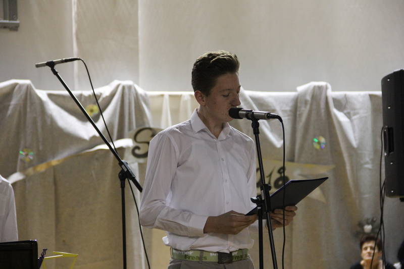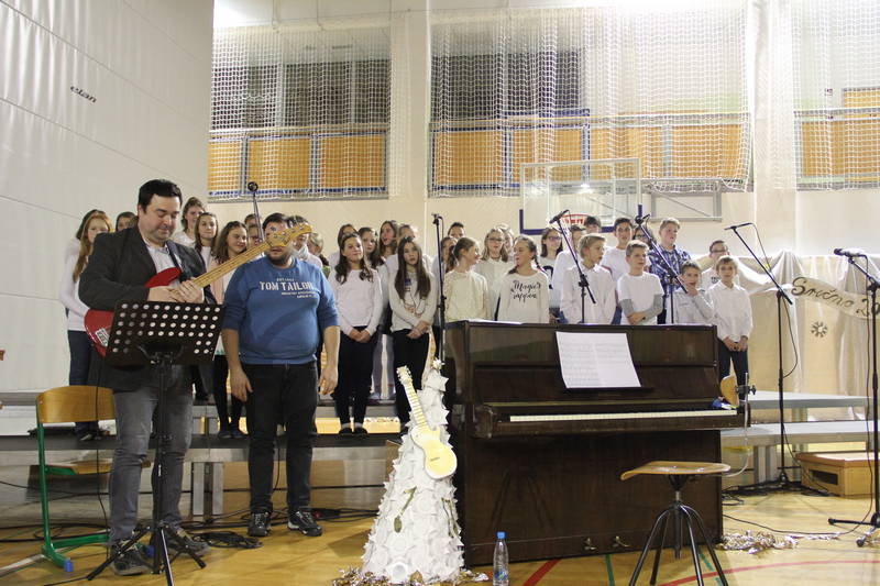 Za glasbeno spremljavo so poskrbeli na bas kitari gospod Andrej Kočar, na cajonu Anže Burja in pri klavirju gospa Karla Urh.