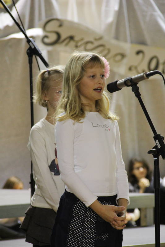 Nevidne zlate nitke smo tkali skozi program pevci otroškega in mladinskega pevskega zbora, učenci glasbenega krožka, izbirne vsebine ansambelske igre, recitatorji razredne stopnje, še posebej pa smo bili veseli skupnega nastopa z našimi gosti pevci mešanega zbora društva upokojencev Kamnik. Vse zlate nitke pa povezuje naša zborovodkinja gospa Karla Urh.