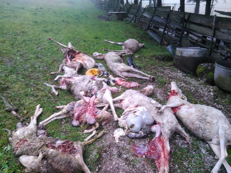 Prvi napad medveda na ovce se je zgodil na pašniku pod Menino planino v noči na nedeljo, ko je medved pokončal osem, povečini visoko brejih ovac.