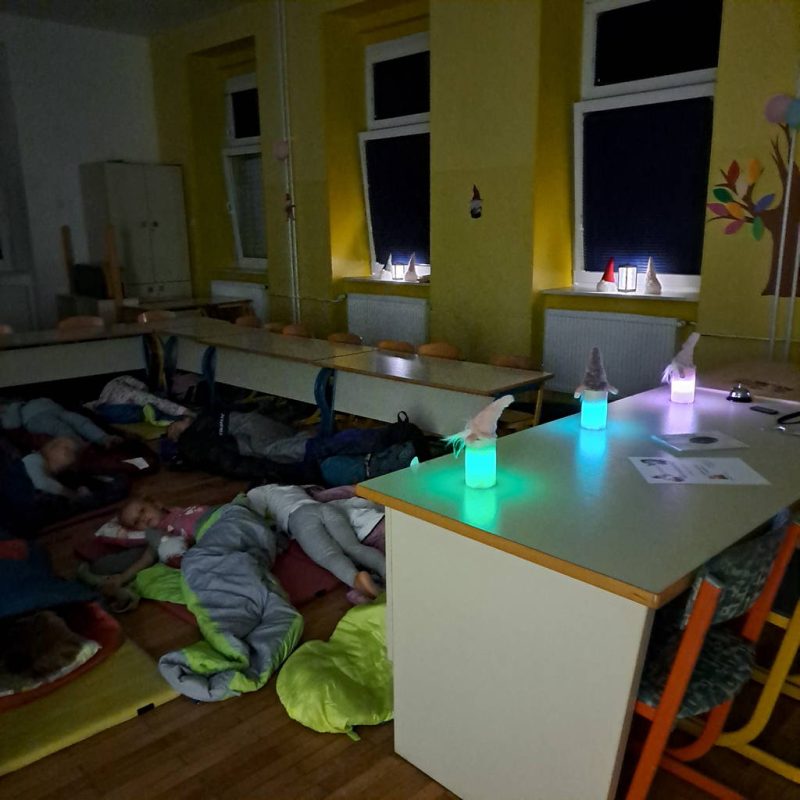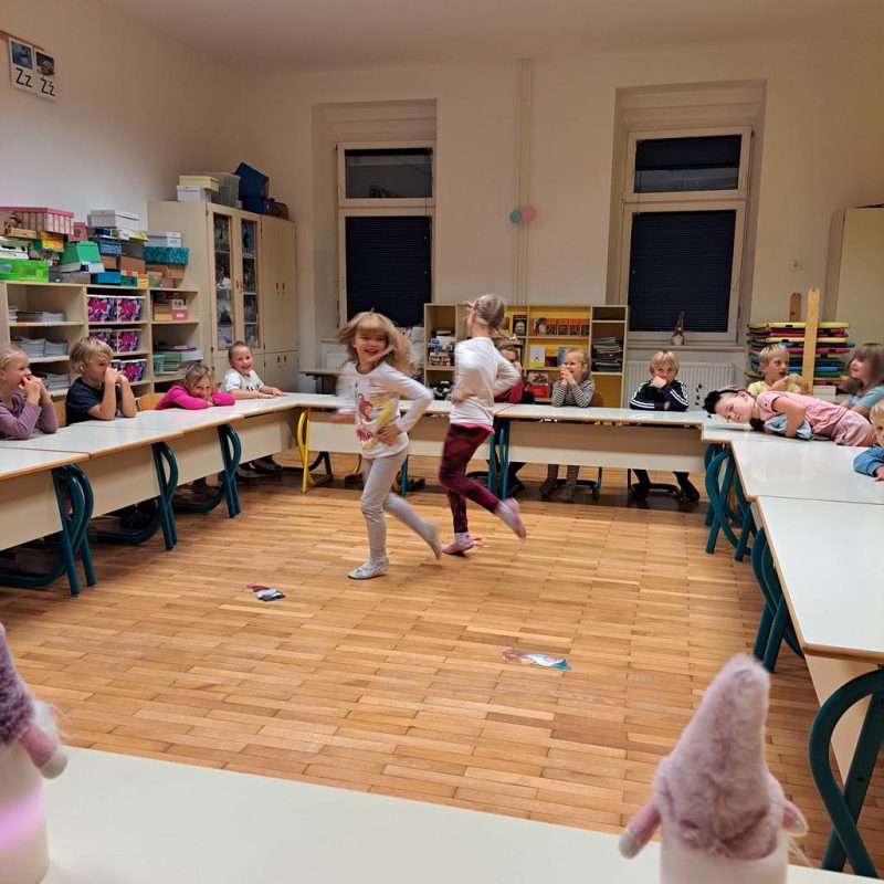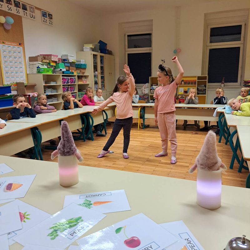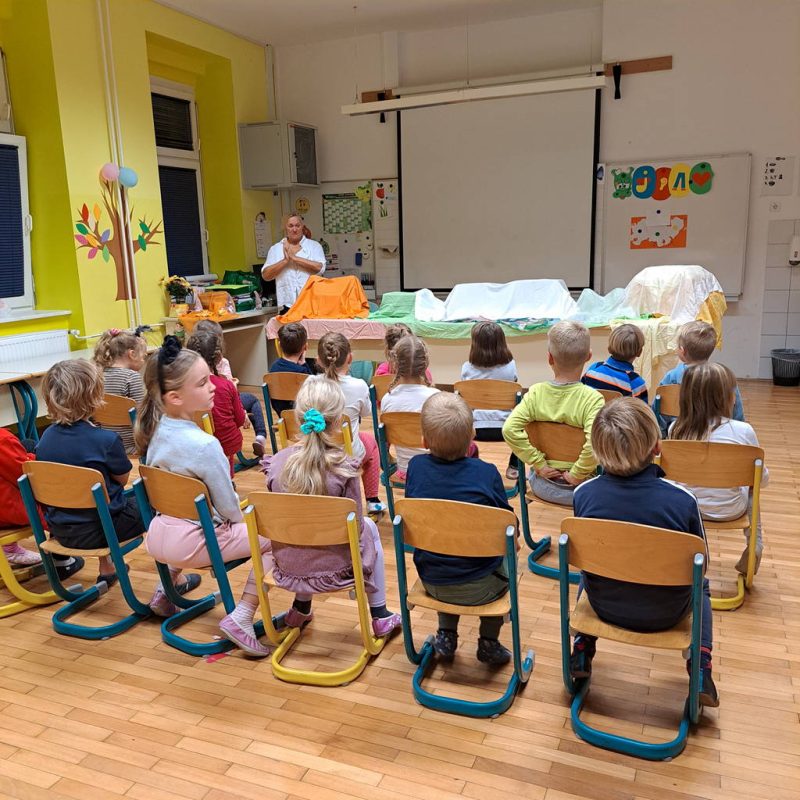 Po okrepčilu je sledila čarobna predstava Rosane Kleindienst, Deklica s svetilko, ta je otroke popeljala v pravljični svet. Pred škratjim spanjem so otroci pokazali svoje spretnosti na škratjem talentu.