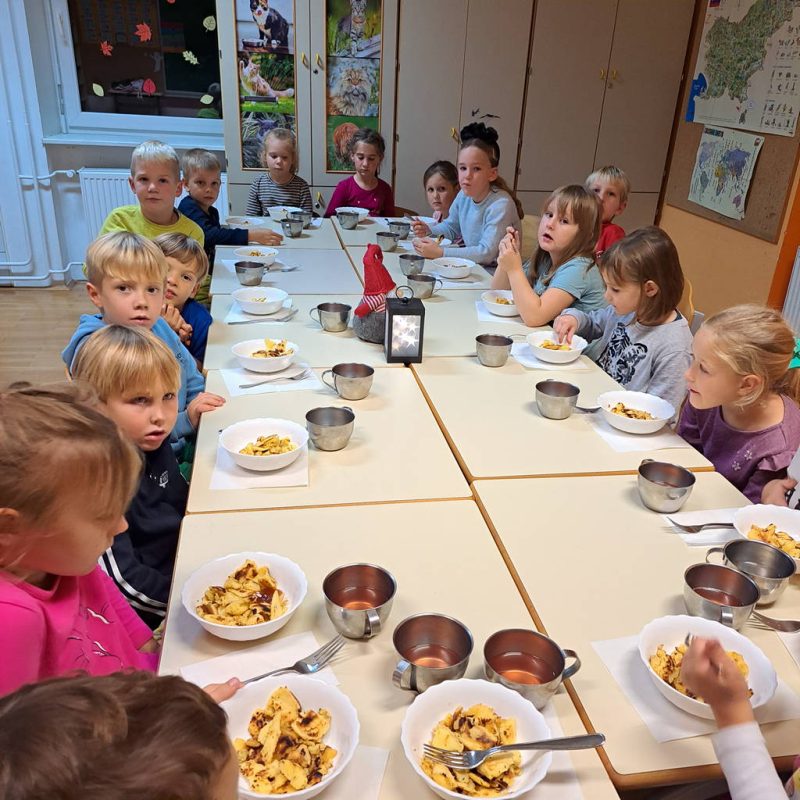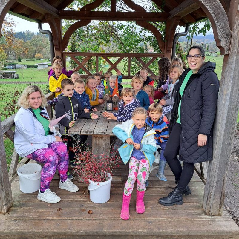 Skozi uganke so spoznavali škratje življenje. Po sprehodu je otroke pričakala škratja večerja, za katero je poskrbela Helena Kočar. Škratji pomočniki so se razveselili pečenega kostanja, ki ga je spekel Boštjan Pavlič.