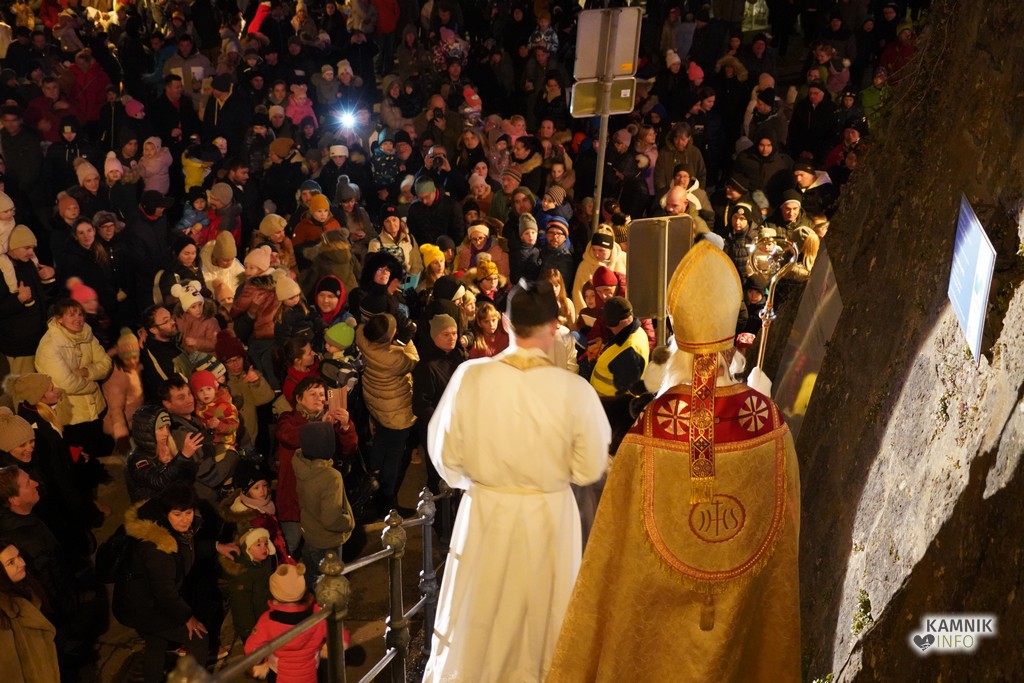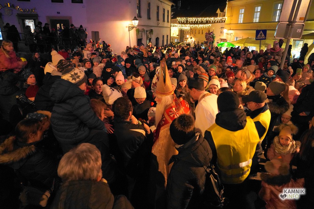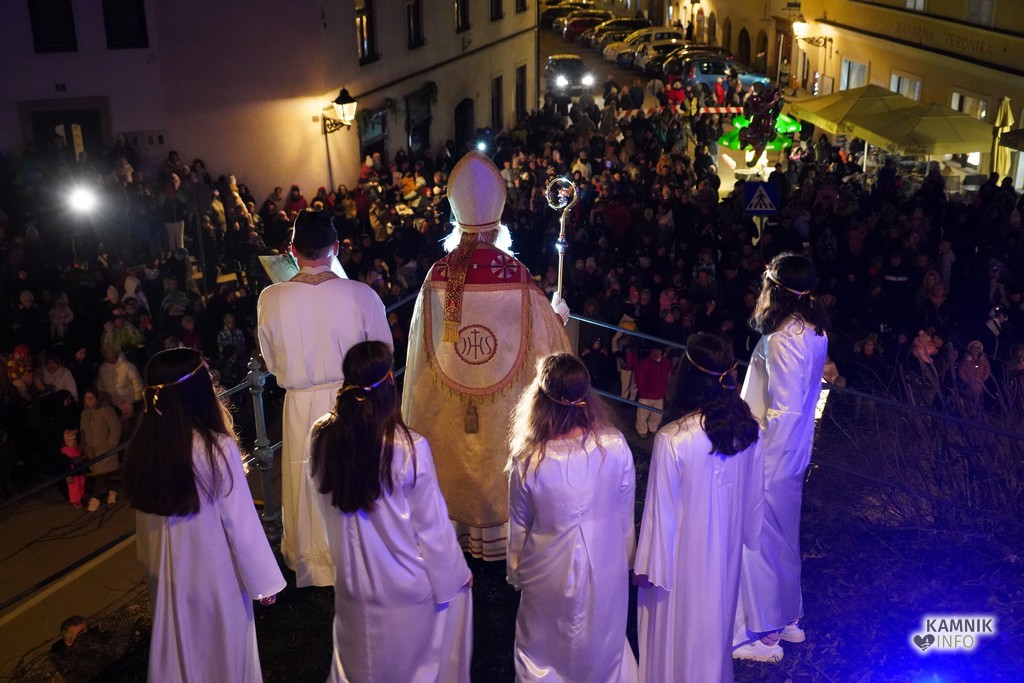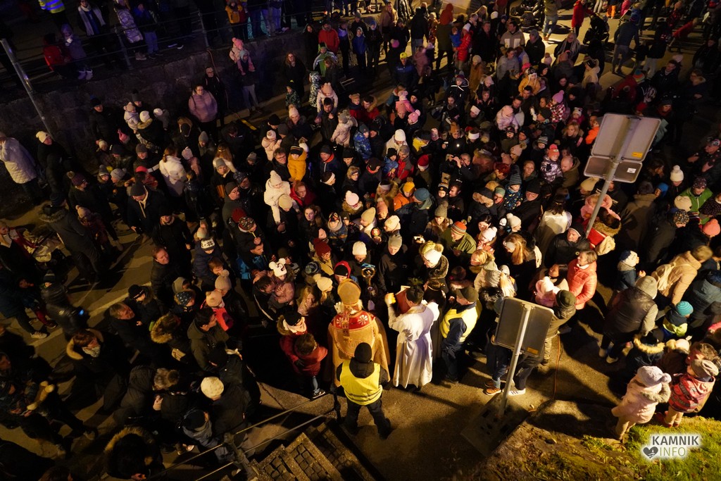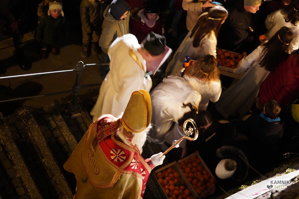 Sveti Miklavž, prvi izmed decembrskih dobrih mož, je nocoj s svojim spremstvom obiskal kamniške otroke, ki so se skupaj s svojimi starši in starimi starši, v velikem številu zbrali pod pobočjem Malega gradu.