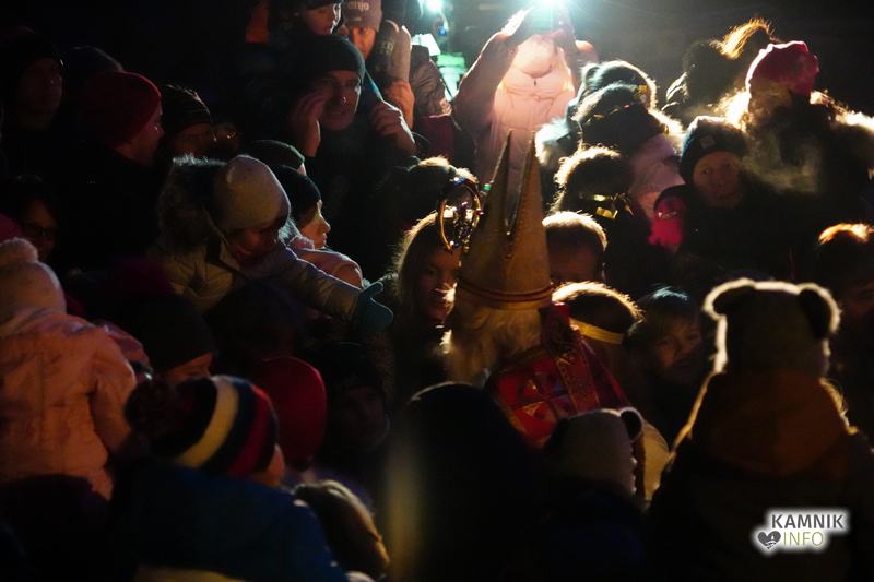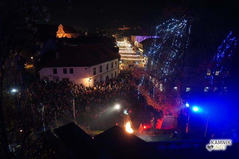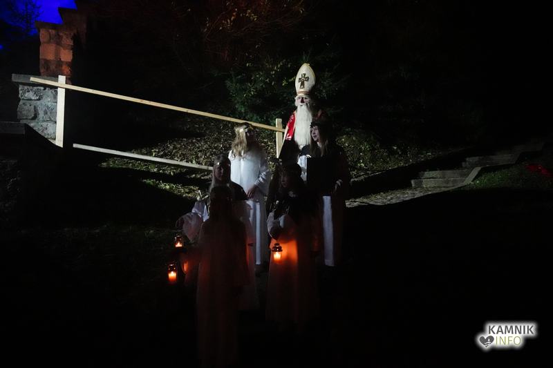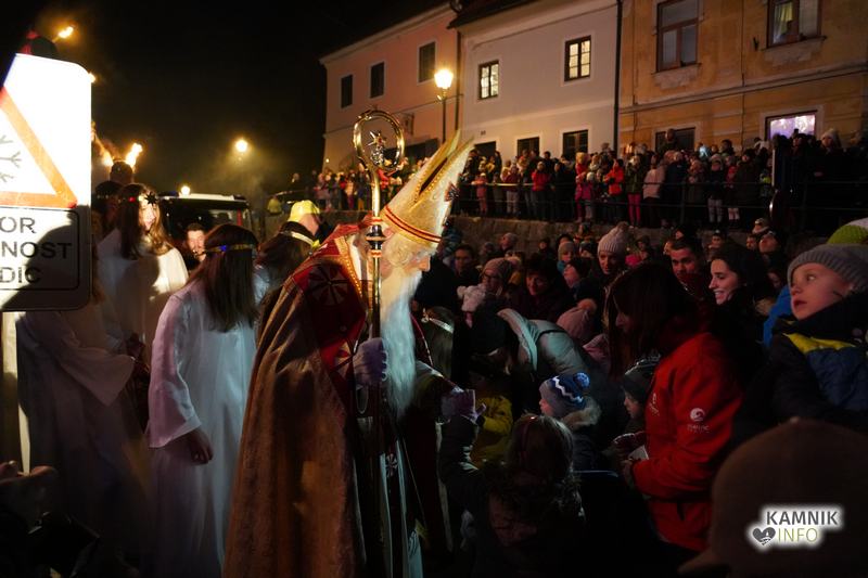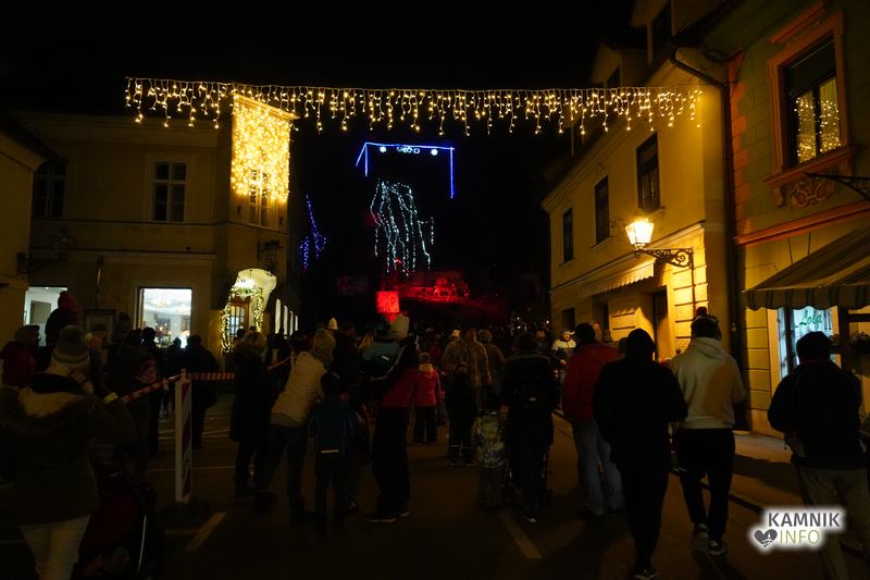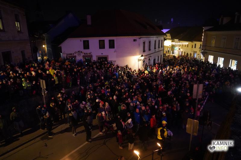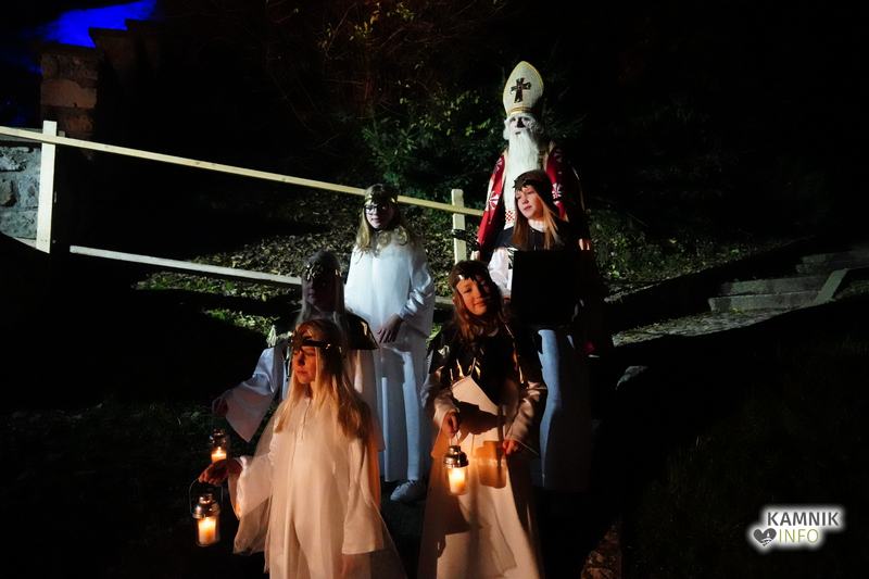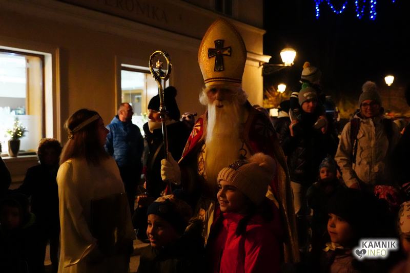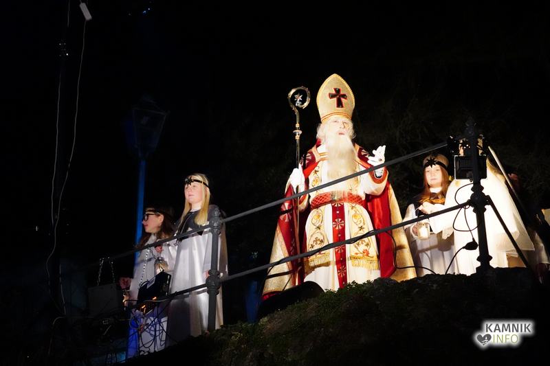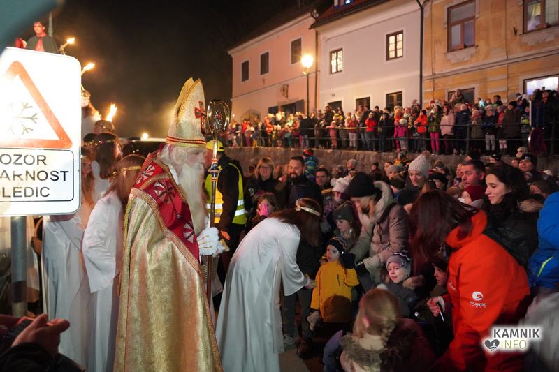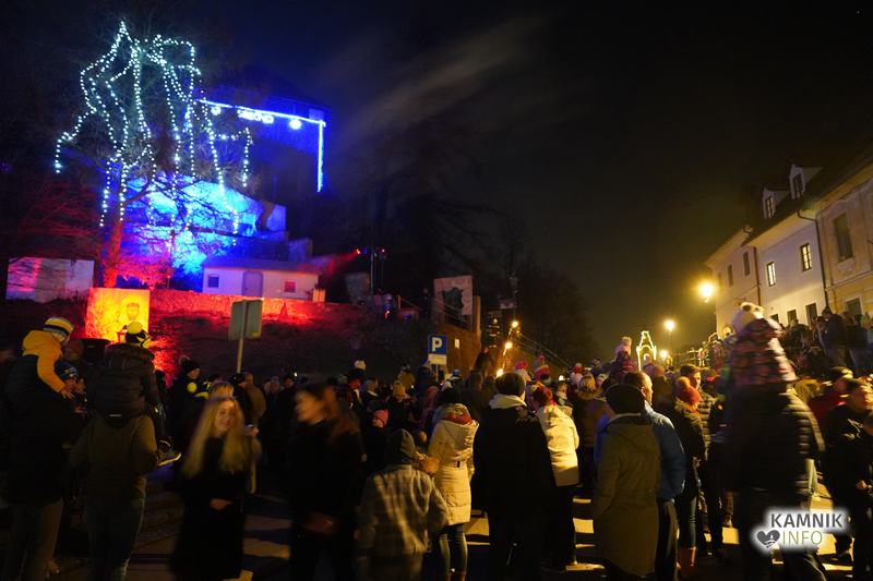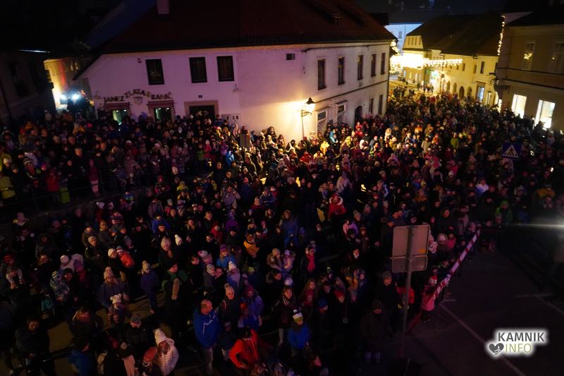 Pod malograjskim pobočjem v središču Kamnika se je nocoj znova zbrala nepregledna množica otrok in staršev, ki so z veliko nestrpnostjo pričakali prihod Miklavža, prvega izmed darila nosečih decembrskih dobrih mož.