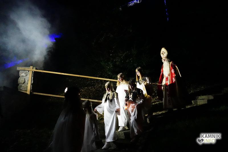 Po poučni igrici je, po stopnišču z Malograjskega hriba skupaj s svojim peklensko angelskim spremstvom, prišel težko pričakovani Miklavž, ki je zbrane, kot je to njega dni prav rad počel tudi prvi državni parkelj, najprej nagovoril, nato pa se, medtem ko so Mali grad razsvetlile rakete, komajda zdrenjal med cukrov ter selfijev željne mladeži, ki je veselo vriskala.