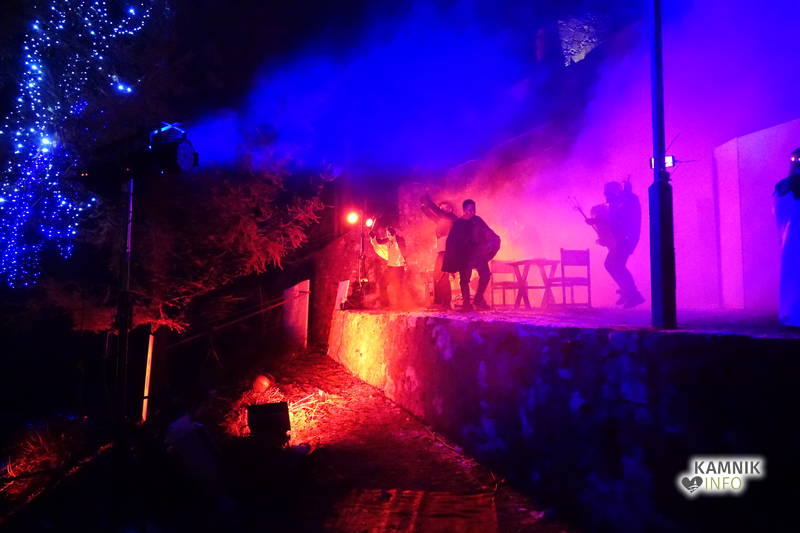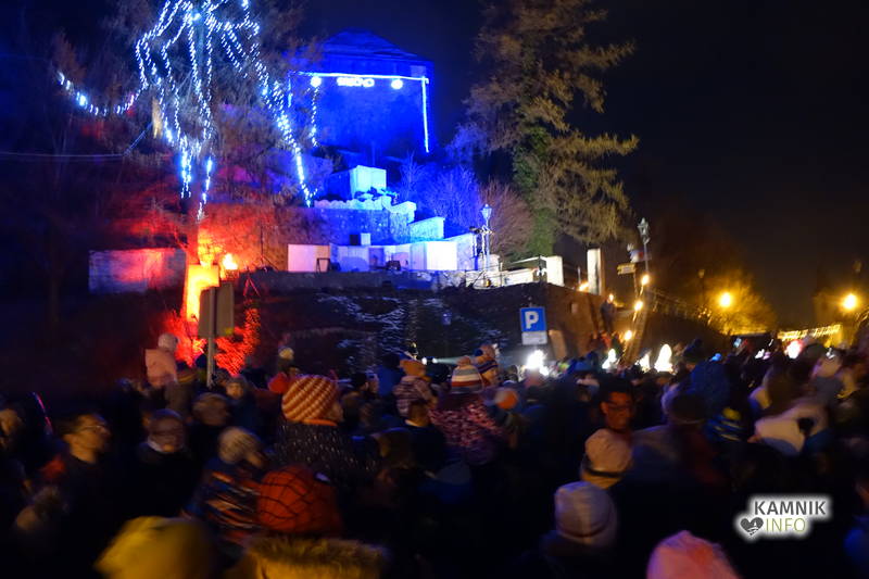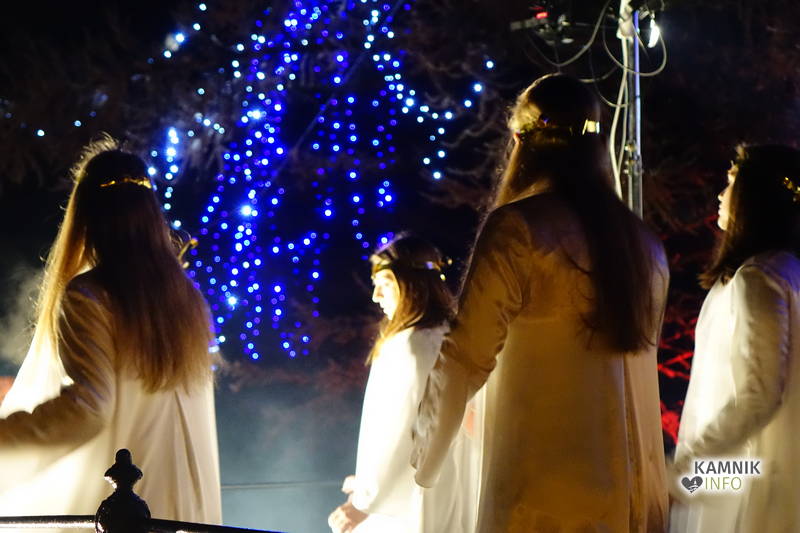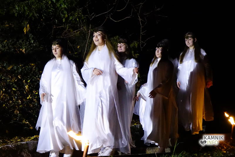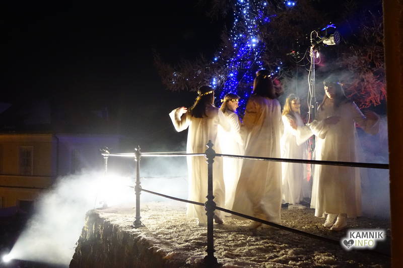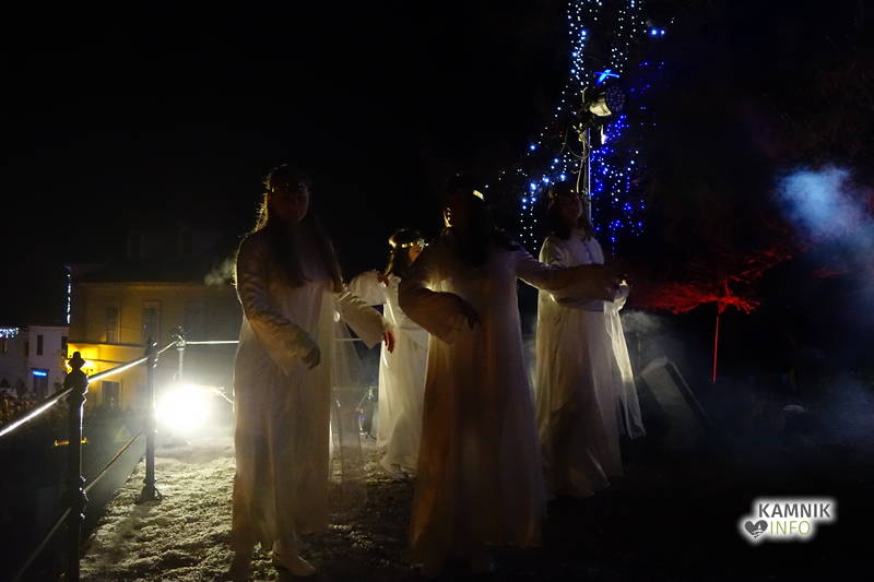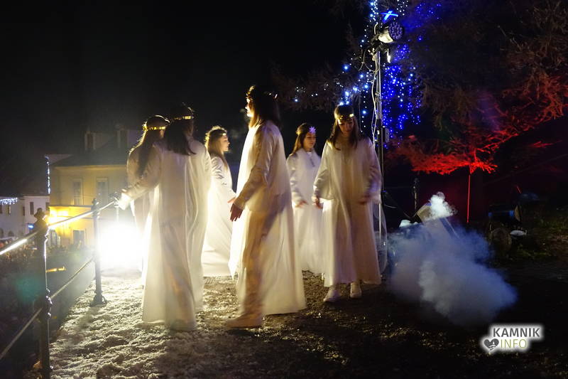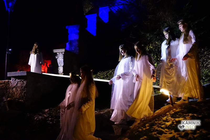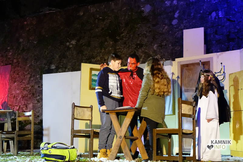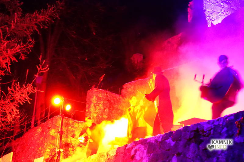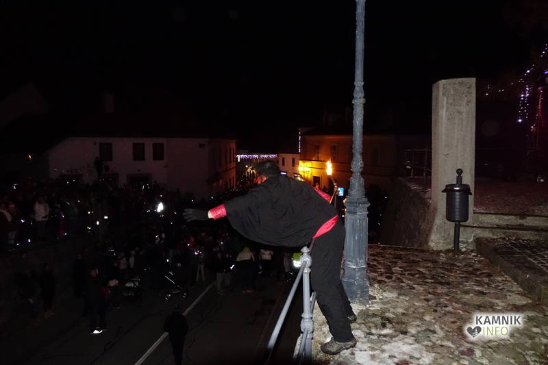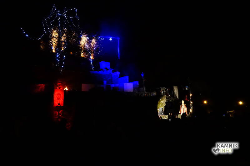 Ko je, vsaj v odigrani igrici, dobro znova zmagalo dobro nad zlim, je z malograjskega pobočja, v spremstvu angelov prišel sv. Miklavž, ki je najprej nagovoril, nato pa se, v siju raket, spustil z Malega gradu in vsaj simbolično tudi obdaroval najbolj pridne kamniške otroke.