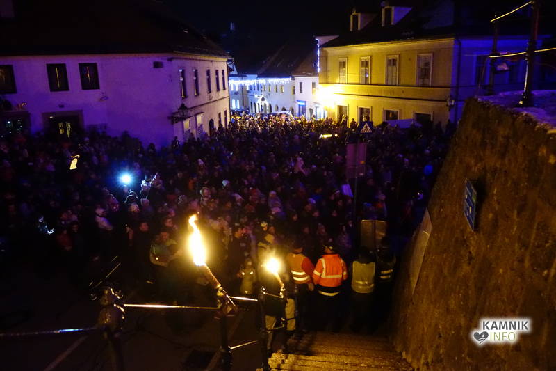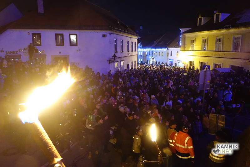 V spremstvu razgrajaško razposajenih parkeljnov in dobrodušnih angelčkov, je kamniške otroke, ki so se nocoj v nepregledni množici zbrali pod malograjskim pobočjem, že obiskal sv. Miklavž.