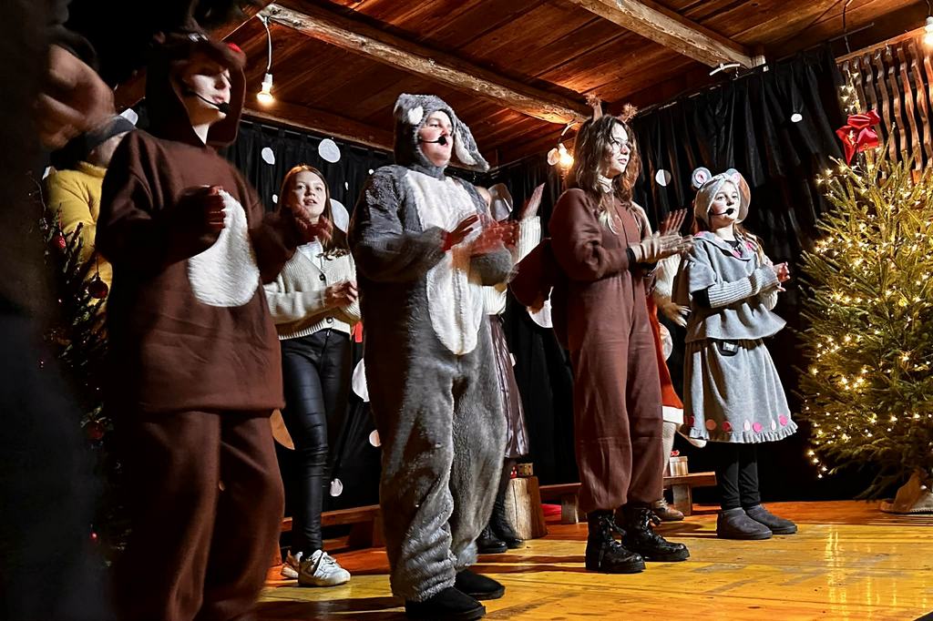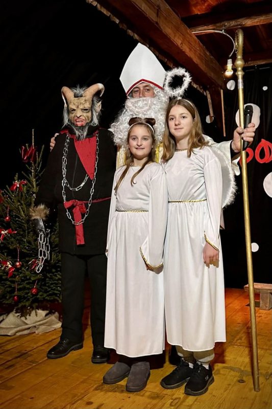 A novembra se začnejo resne priprave na Brezjansko miklavževanje. In povem vam, to ni kar tako. 10 umetniških dušic se je “spopadlo” z izzivom; kako najbolj prisrčno in prepričljivo predstaviti zgodbo, ki je znana skoraj vsakemu otroku. Zgodbo o medvedu in njegovem dežniku, pod katerim ni nikdar nikogar zeblo. Ko pišem tale zapis, se mi prikrade misel: ta dežnik, je kot naš nadstrešek – gostoljuben, pod njim nikdar nikogar ne zebe, pod njim so vsi prijazni in vedno se za vse najde prostor (včasih tudi dobesedno zadnjo minuto).