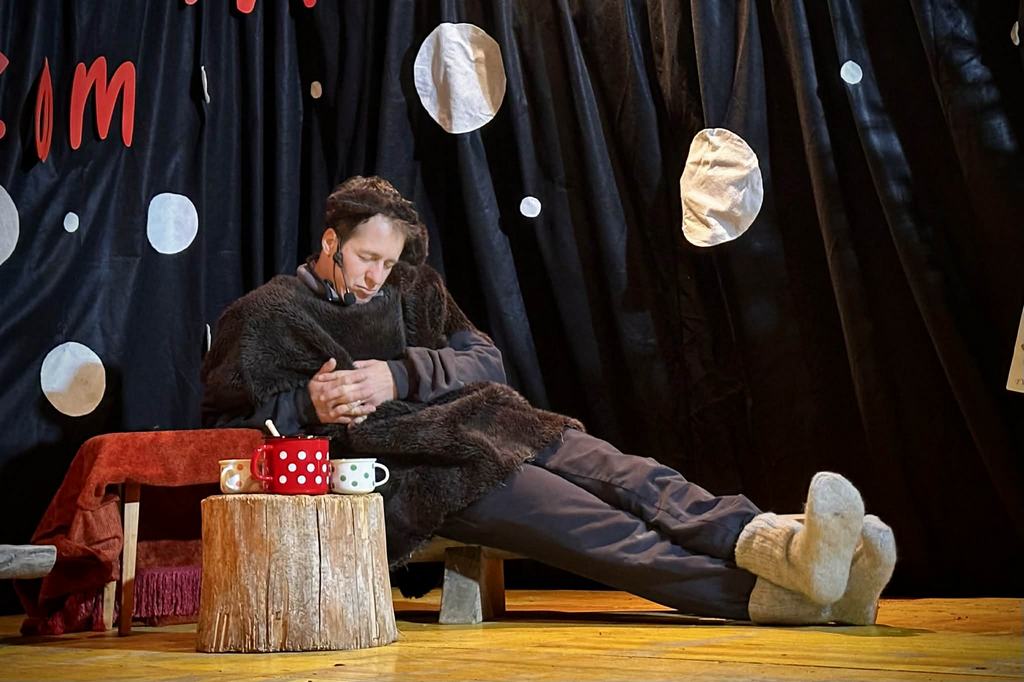 Zgodba POD MEDVEDOVIM DEŽNIKOM je s svojo sporočilnostjo brezčasna. Kako je prav, da si pomagamo, si priskočimo na pomoč in ne mislimo le in samo nase. Zgodbo je na oder postavila režiserka Bojana Lužar. Skozi zgodbo sta nas občuteno popeljala pravljičarja Slavi Podbelšek Pavlič in Matjaž Šmauc.