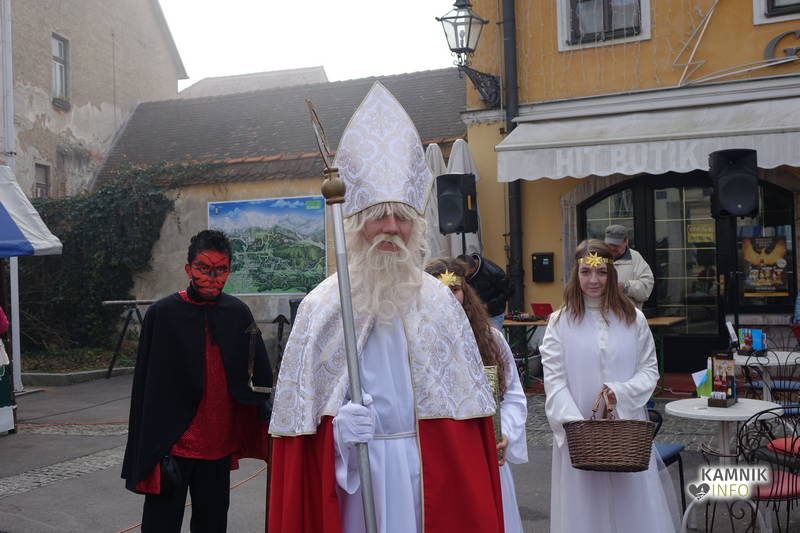 V spremstvu angelčkov in parkeljna se je med stojnicami sprehodil tudi Miklavž, ki je najmlajše obdaril s sladkimi darilci in suhim sadjem. Na uho nam je prišepnil, da bo danes ponoči pustil sladka presenečenja vsem pridnim, ki smo nastavili peharje, vsem porednim pa bo prinesel šibo. Za plesni program so poskrbele plesalke Plesnega kluba Šinšin Kamnik, za zvoke domače glasbe pa mladi Ansambel Šus iz Tuhinjske doline. Posebnost tokratne tržnice je bila tudi izmenjava igrač, na eno izmed stojnic so otroci lahko prinesli igračo, ki je ne potrebujejo več in si izbrali drugo.
