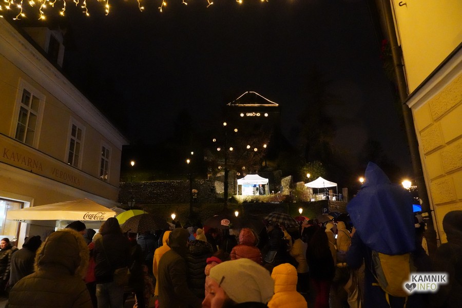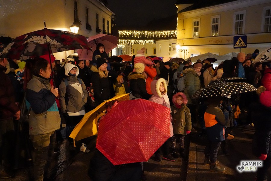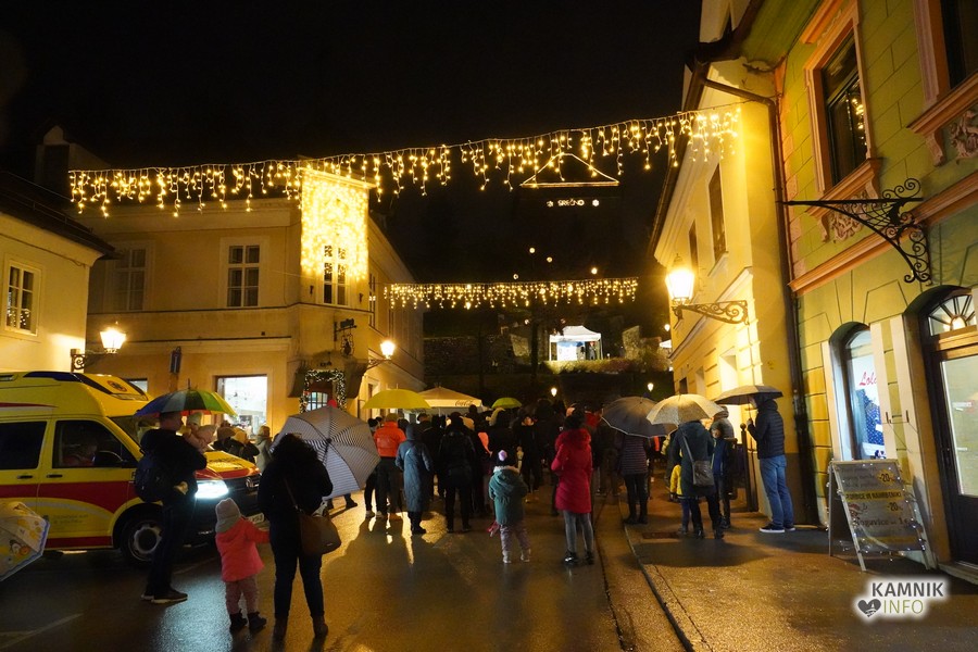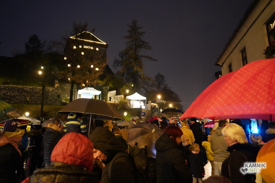 Nič kaj praznično vreme z zoprno hladnimi dežnimi kapljami, ki so odplaknile načrtovano odprtje drsališča in nastop kamniških godbenikov, ni preveč zmotilo lepega števila obiskovalcev, da bi v središču Kamnika ne prisostvovali nocojšnjemu prižigu prazničnih luči in prihodu prvega izmed treh decembrskih dobrih mož.