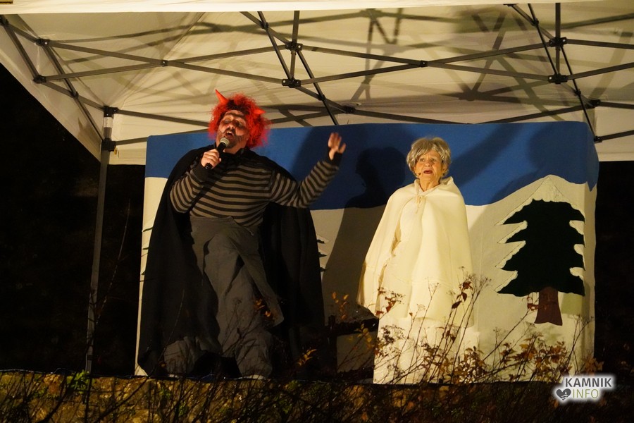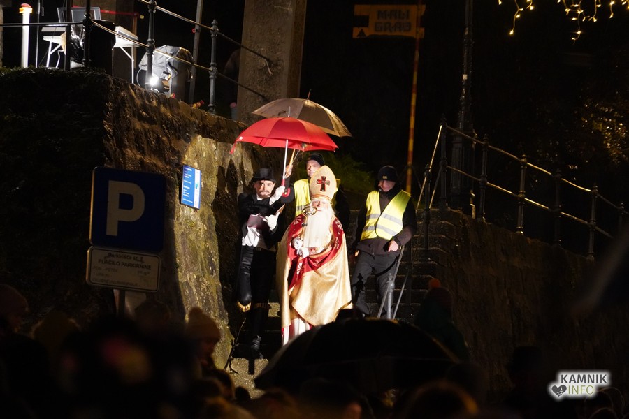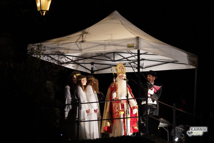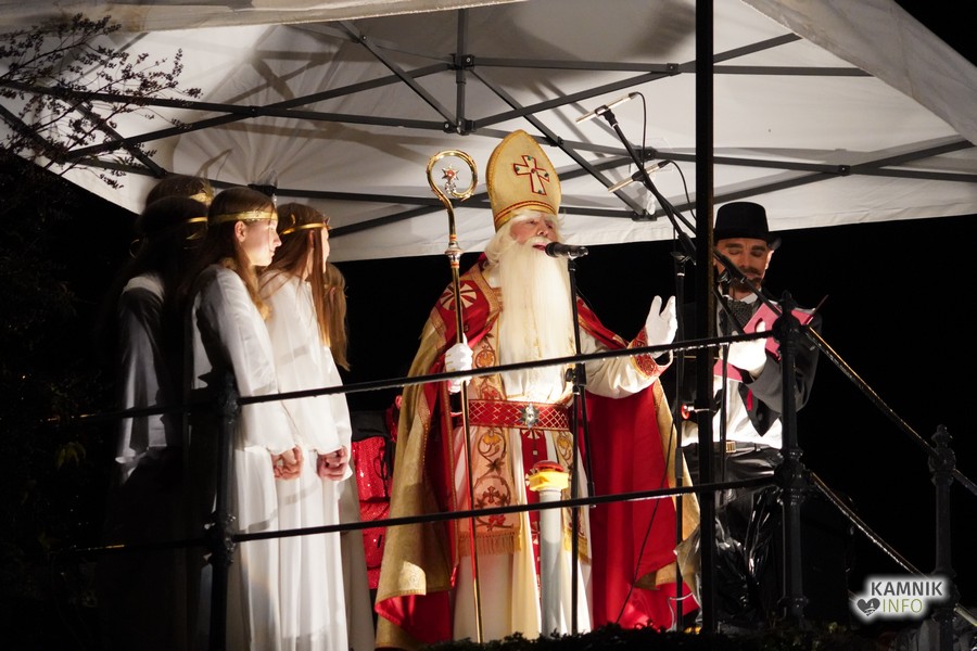 Kljub precej kislemu vremenu so se nocoj v Kamniku prižgale praznične luči, najmlajše pa je razveselil Miklavž s svojim spremstvom in poučno, družbeno aktualno predstavo o zmagi dobrega nad zlim.
