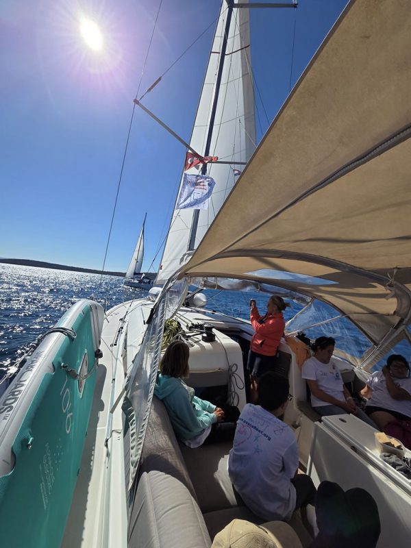 »Danes se je začela moja največja pustolovščina tega poletja!« je zapisala ena od udeleženk projekta Mirno morje 2025, ki se je v tednu od 13. do 20. septembra odvijal na Jadranu. Skupaj z vrstniki iz Slovenije, Avstrije, Nemčije, Hrvaške, Srbije, Bosne, Ukrajine in Kosova je prvič stopila na jadrnico in izkusila življenje na morju: učenje vozlov, krmarjenje, skupno kuhanje in sobivanje v majhnih prostorih.