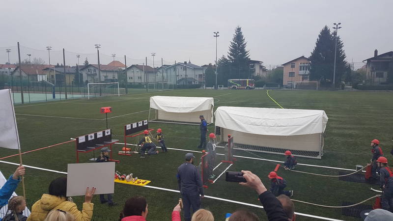 Prišla je sobota, 13. april – dan D. Zato smo se zjutraj zbrali pred gasilskim domom v Zg. Tuhinju. Starši in drugi navijači smo se skupaj z mladinkami odpravili v Slovensko Bistrico. Pridružil se nam je tudi predsednik gasilske zveze Kamnik, Tomaž Zabavnik.