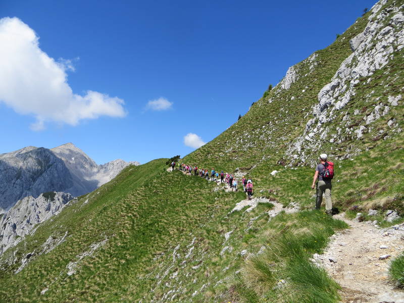 Za celodnevni pohod smo si letos izbrali Vrtačo na 2181 m nadmorske višine. Prvi del poti smo opravili vsi skupaj, na sedlu pod Vrtačo pa smo se razdelili v dve supini: ena skupina se je povzpela na vrh, druga skupina pa se je odpravila proti Zelenici. Z vrha Vrtače smo imeli res lep razgled na Blejsko jezero, avstrijski del Karavank, Stol in še druge vrhove. Na vrhu pa so nas prišle pozdravit tudi kavke. Vsi smo se vrnili celi, zdravi in prijetno utrujeni.