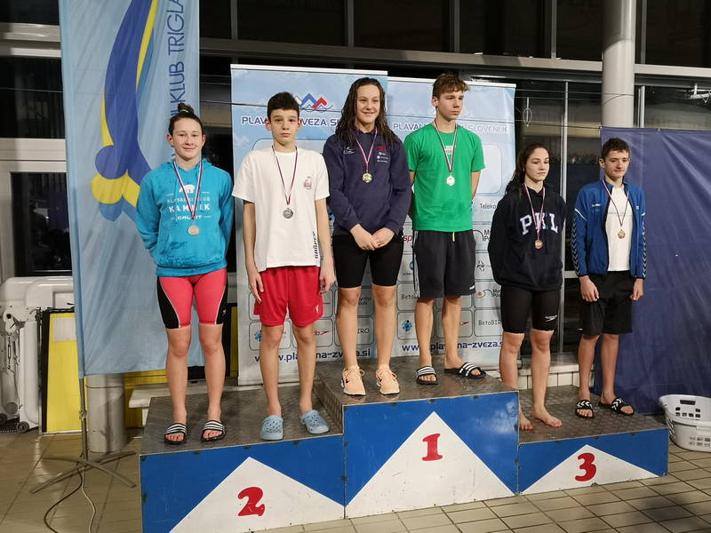 Taja Klemen: 1. mesto 100 m hrbtno, 2. mesto 100 m prosto in 3. mesto 400 m prosto.