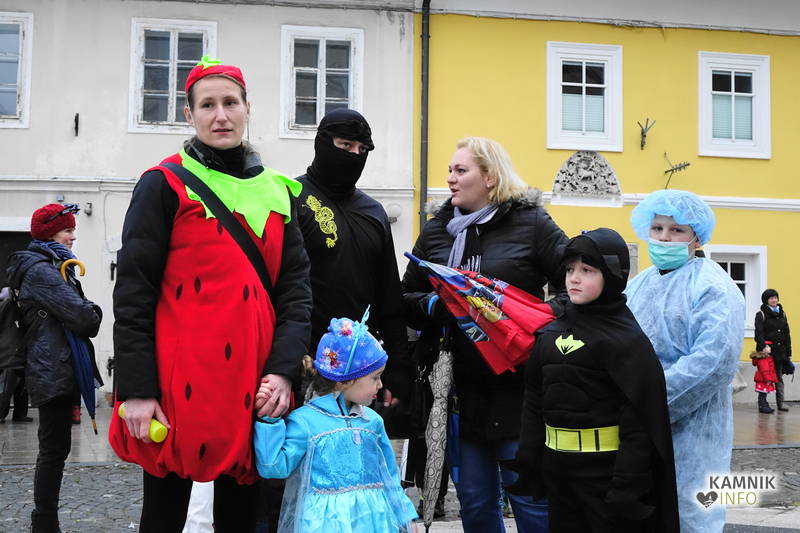 Zoprnemu vremenu in dežju navkljub je danes v Kamniku potekal pustni karneval s povorko in pustnim rajanjem na glavnem trgu.
