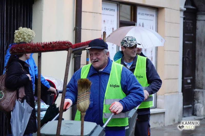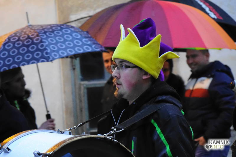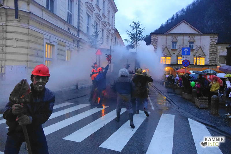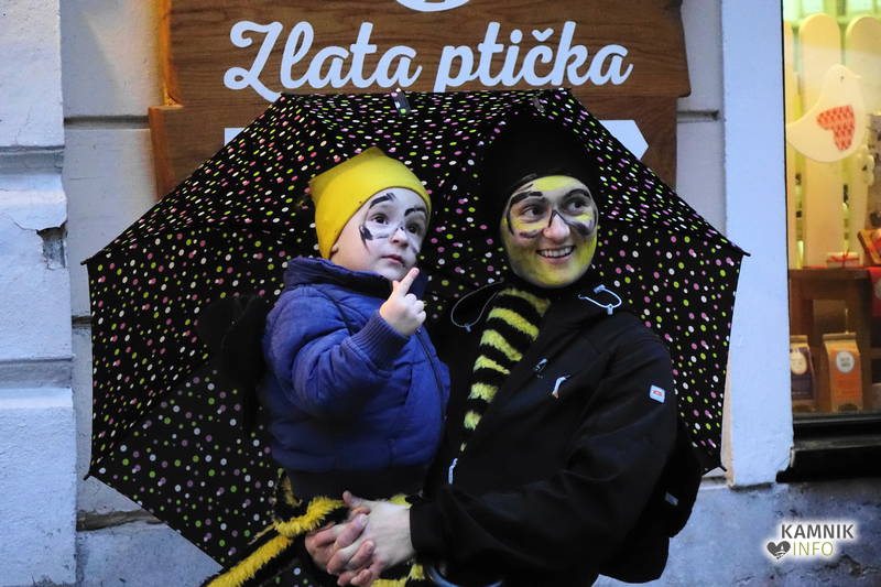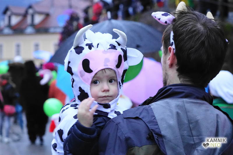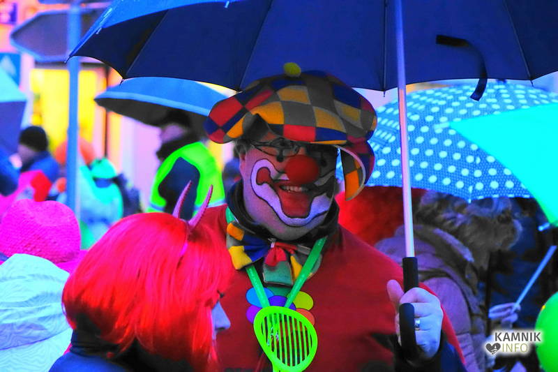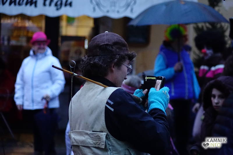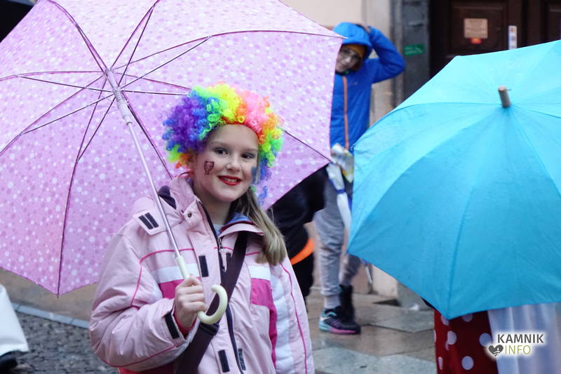 Ob zoprnem, vendar ne premočnem pršenju dežja se je vsem, ki se še spomnijo, da so nekdaj kamniška pustna rajanja potekala v športni dvorani, še posebej pa staršem najmlajših, kar nekoliko stožilo po starih, dobrih časih, ko se je na pustni torek v Kamniku lahko rajalo tudi na suhem in toplem, ampak maškare vendarle preganjajo zimo, sploh pa niso iz sladkorne pene, da bi se morale bati mraza in dežja, medtem ko imajo klovni že od nekdaj rdeče nosove in velike robce za smrkanje.