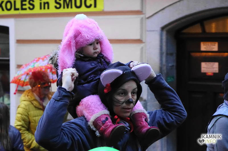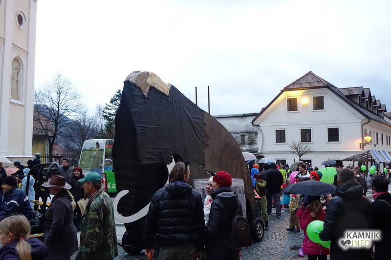 Maškare so se začele ob pol petih zbirati na Šutni, povorka pa je izpred šutenske cerkve, podobno kot lani, na čelu z mamutom, mažoretkami in mestno godbo, proti Glavnemu trgu krenila šele ob petih, kar je, še posebej zaradi slabega vremena, ponovno nekoliko vznejevoljilo predvsem starše majhnih maškaric.