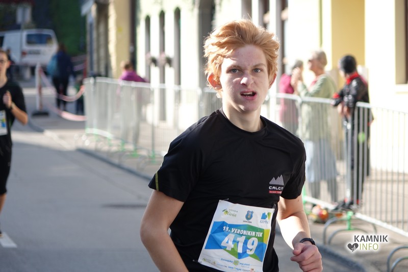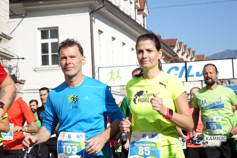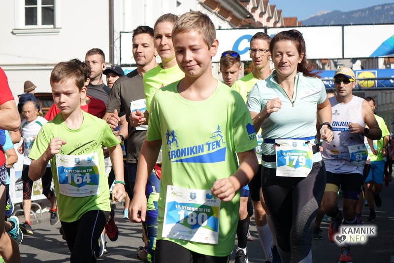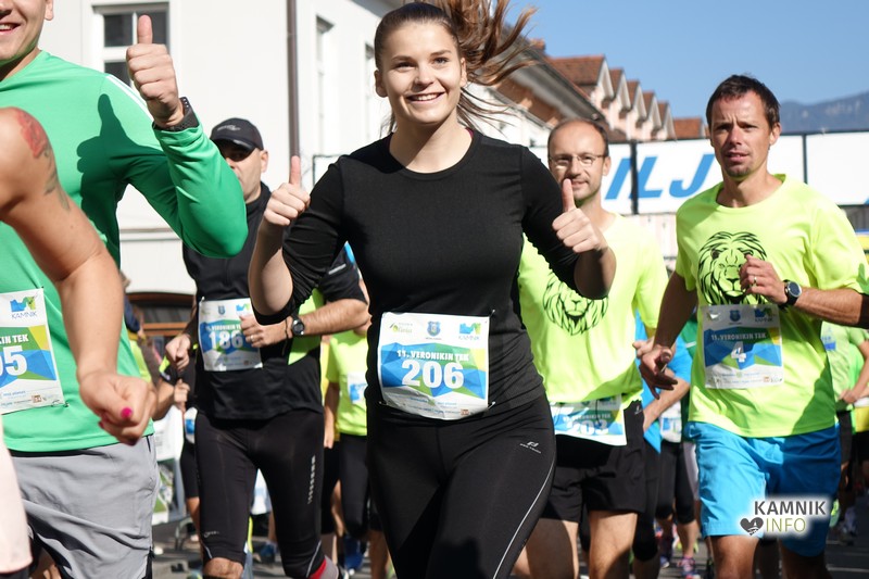 Po polurnem premoru in nagovoru dr. Tomaža Simetingerja je prišel čas za pričetek osrednjega dela današnjega Veronikinega teka, ki poteka že enajsto leto zapored. Ob enajsti uri so se tekači ob poku pištole pognali v dir, trasa pa jih je vodila skozi Kamnik in okolico v krogu dolžine desetih kilometrov.