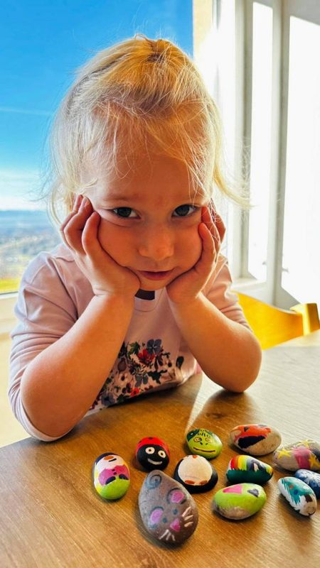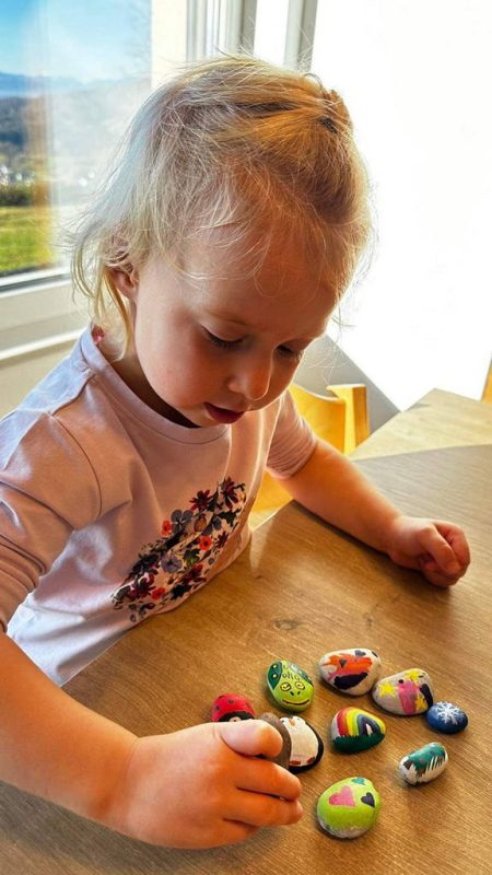 Kamenčke sreče sta poslikali Tatjana Zvržina in njena triletna hči Stella.