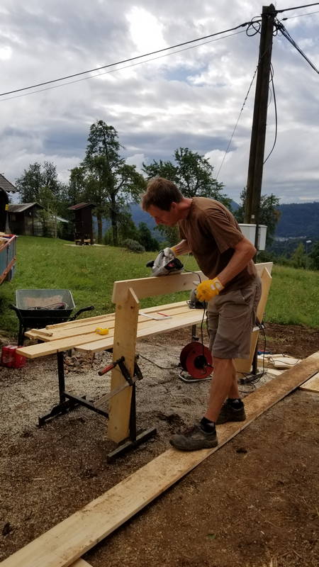 Sledila sta dva dneva žaganja, obrezovanja, oblanja, merjenja in vrtanja vijakov, s katerimi sta Teo in Bojan na tramove hišice pritrdila deske. Ko je bilo delo opravljeno, se je iz Godiča pripeljal Oražmov Franci s kanglicami tungovega olja in z njim premazal vse lesene dele hiške.