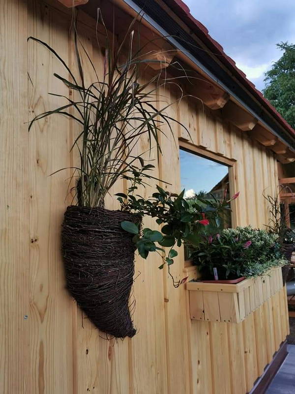 Teo je izrezljal in opasal okenske poličke ter sestavil leseno korito za cvetlični nasad pod oknom. Okrog hišice se je izravnala zemlja in posejala trava, tik ob stene pa so Osolnikov Aleš, Kernov Matjaž in Teo položili betonske plošče.