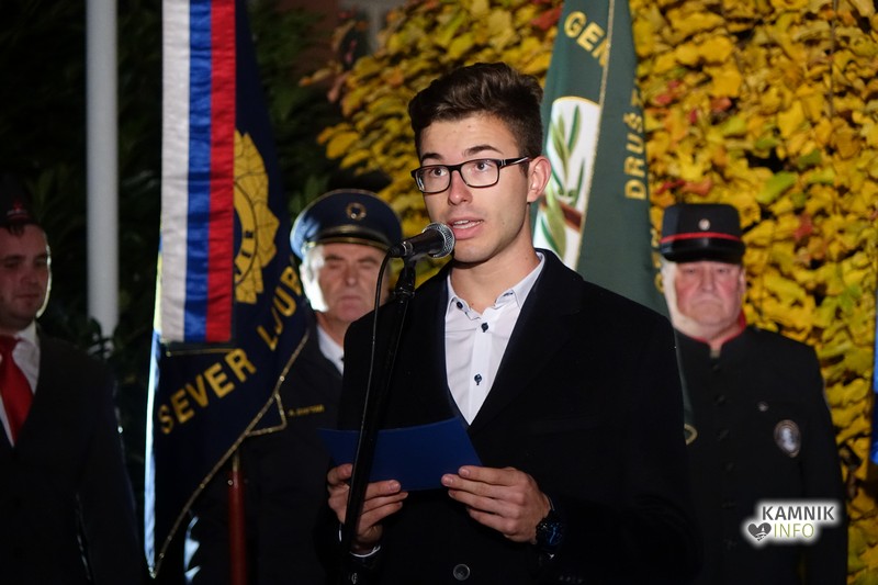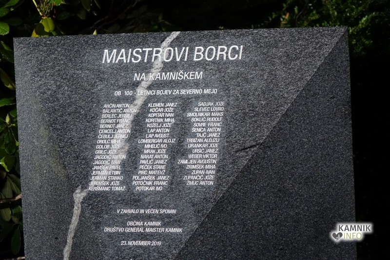 Slavnostni govornik, predstavnik in nekdanji predsednik Društva general Maister Kamnik Ivan Miroslav Sekavčnik je zbrane nagovoril in jih opomnil, da se general ni predal in je vztrajno sledil svojim ciljem, a pri tem ni bil sam: v bojih so mu pomagali hrabri soborci, petdeset imen pa je za vedno vklesanih v nov spomenik, ki stoji ob boku Maistru.